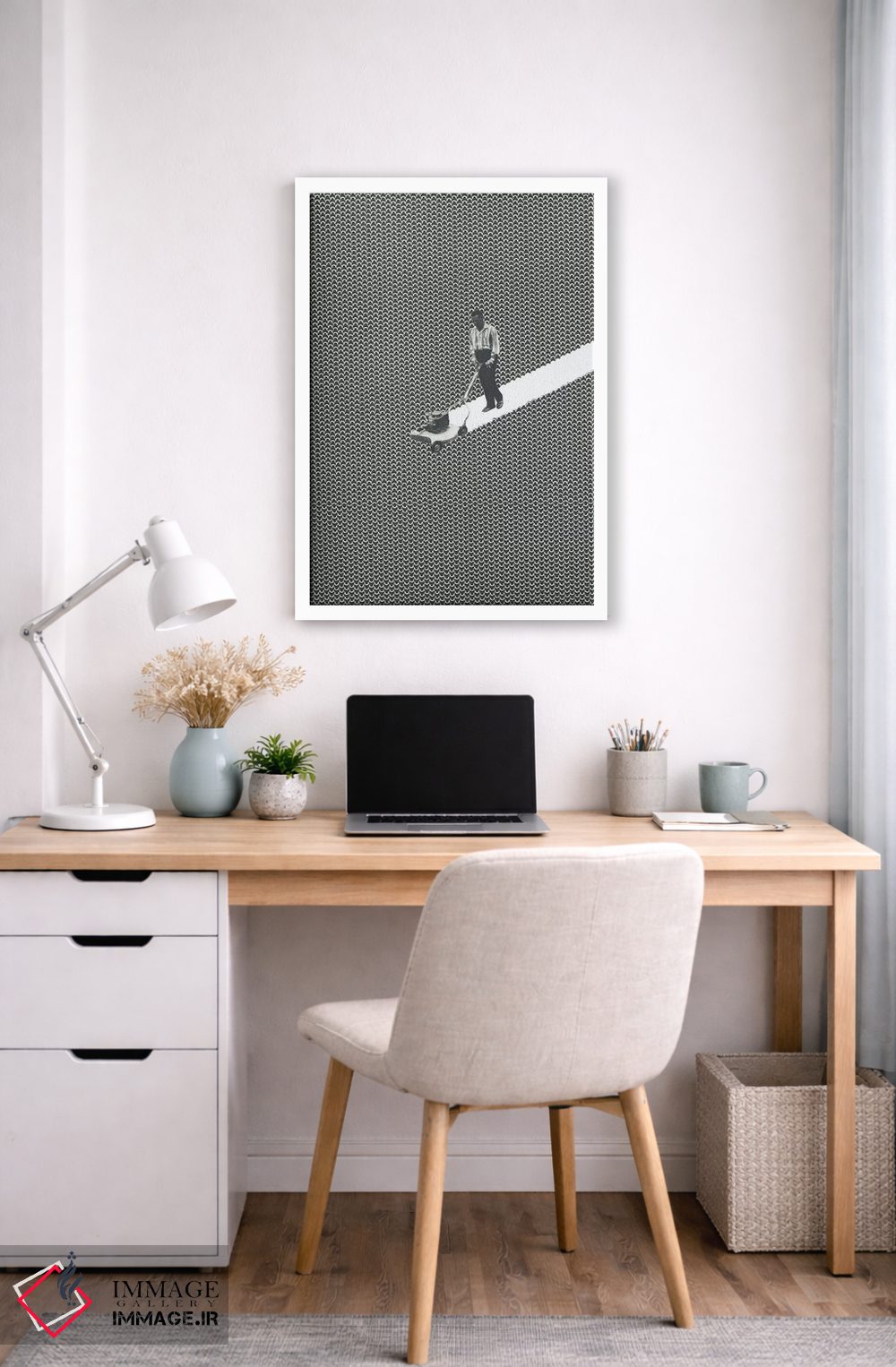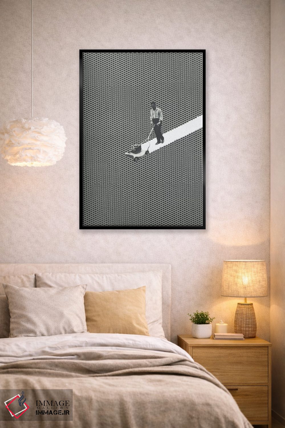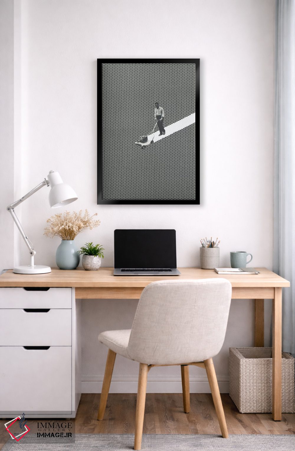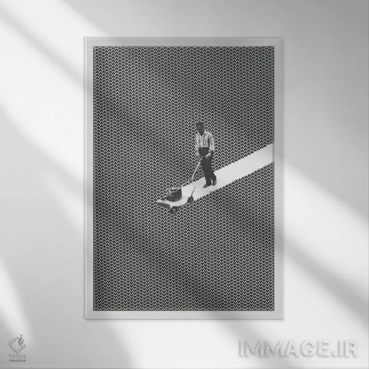 «خالق خطوط (ترکیب line + landscaper)» اثرِ «ریچارد وروجز» با حالوهوای هنر دیجیتال سیاهوسفید، برای فضاهای مدرن و مینیمال انتخابی دقیق و امروزی است.