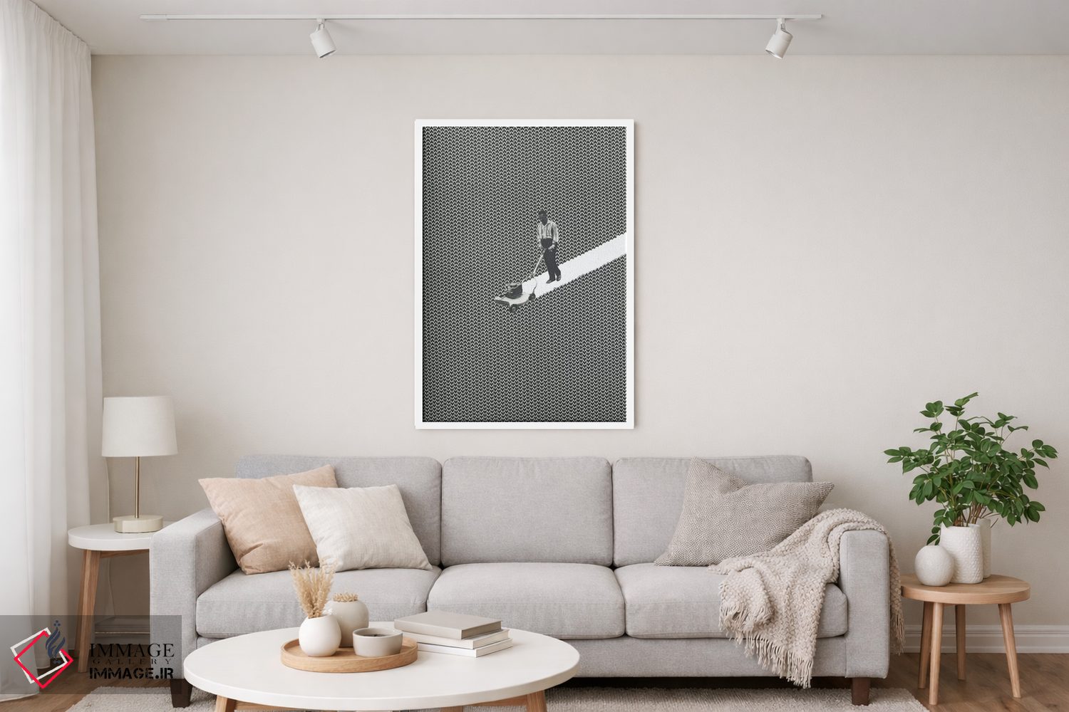 براساس پالت خنثی اثر، قاب مشکی مات (فریم باریک) پیشنهاد اول است و سفید مات (فریم باریک) مکمل. برای سفارشهای پروژهای با ابعاد و قابهای اختصاصی با ایماژ در تماس باشید.