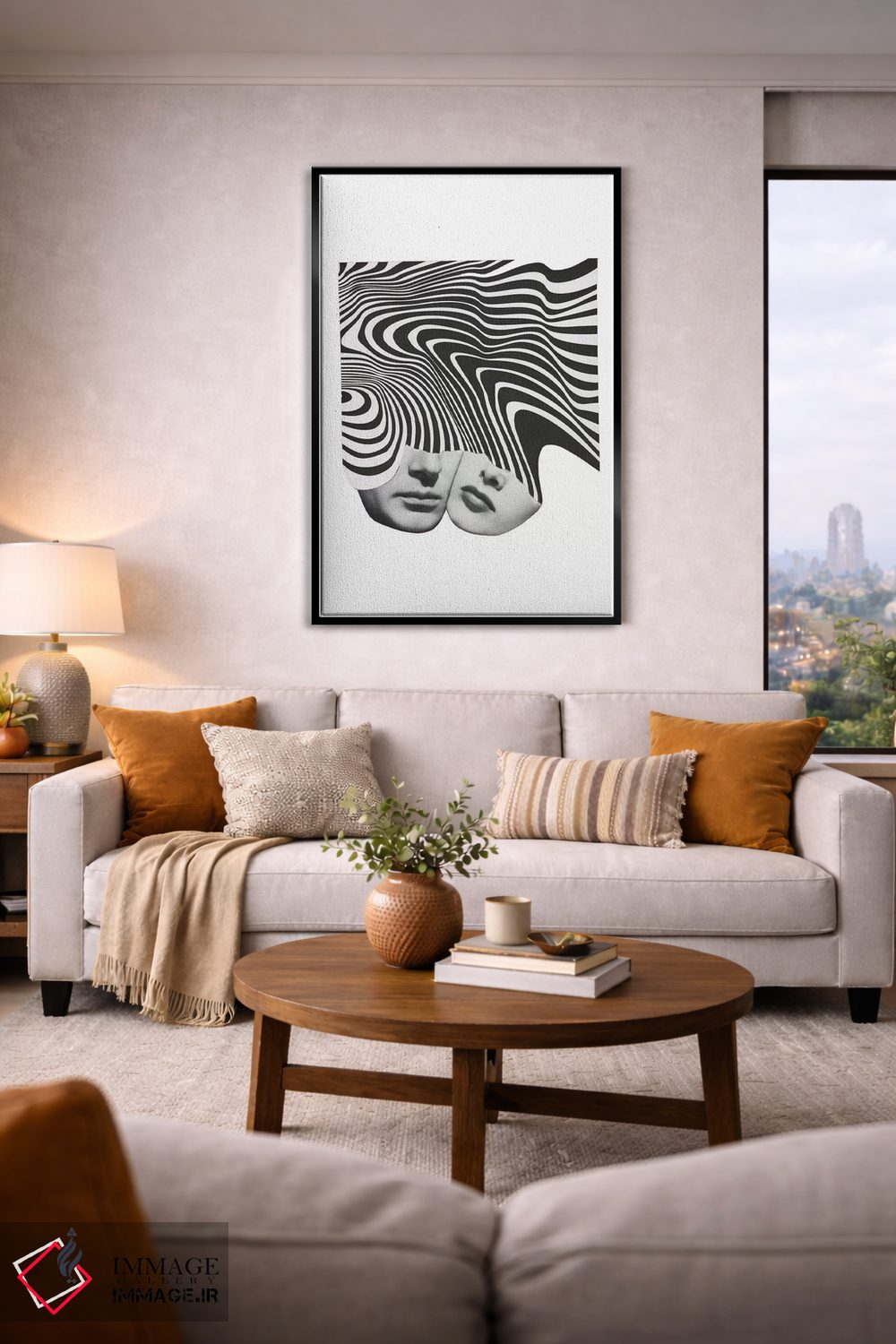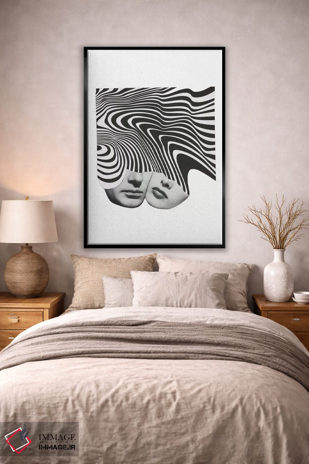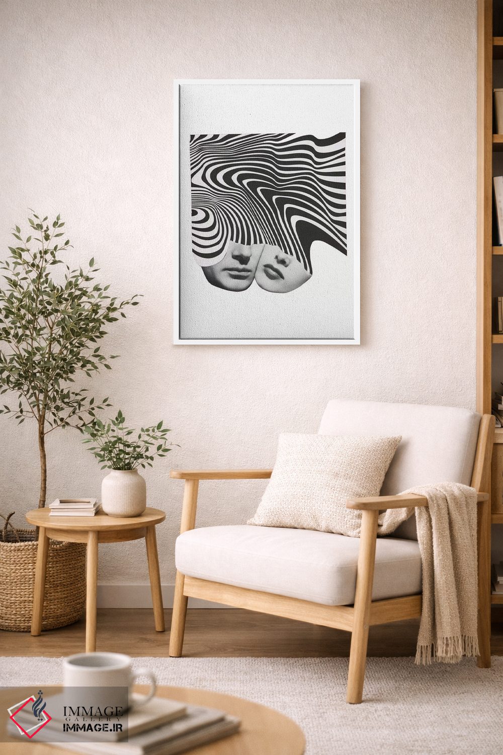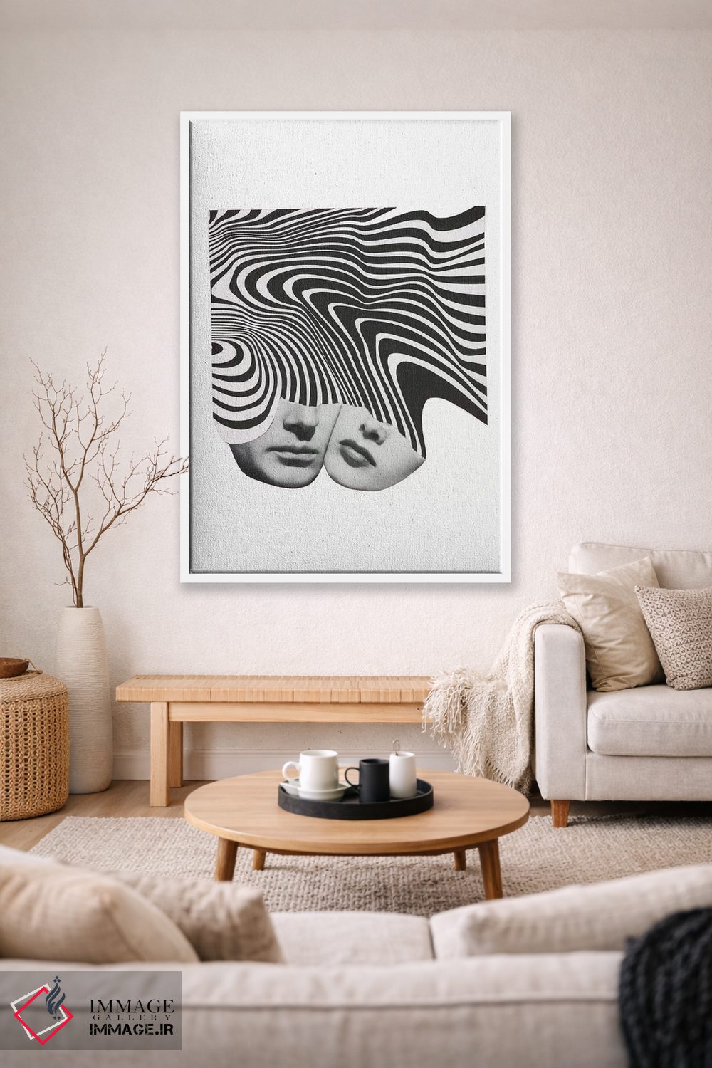 براساس پالت خنثی اثر، قاب مشکی مات (فریم باریک) پیشنهاد اول است و سفید مات (فریم باریک) مکمل. برای سفارشهای پروژهای با ابعاد و قابهای اختصاصی با ایماژ در تماس باشید.