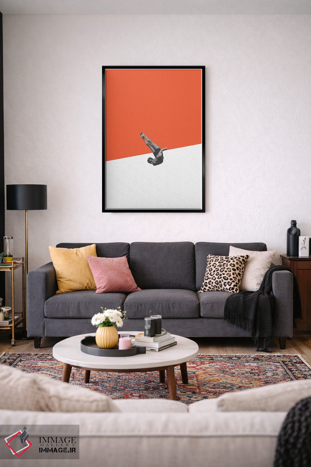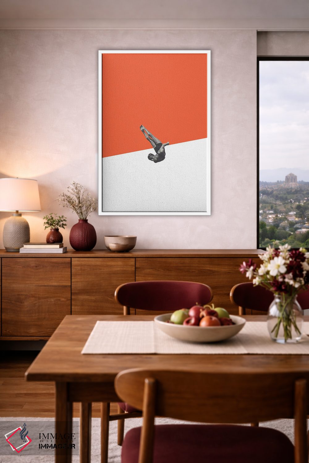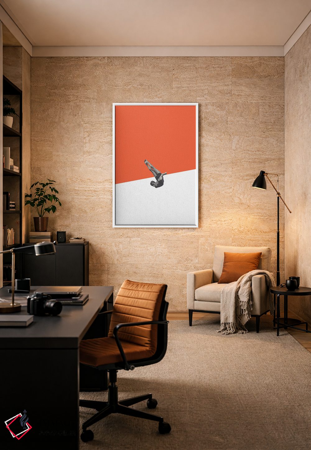 در «غواص (نارنجی)»، اثرِ «ریچارد وروجز» موضوعِ این اثر را با اجرای پرداختِ هنری مطرح میکند؛ برای فضاهای زنانه، لطیف یا حتی مینیمال، کاملاًً قابل چیدمان است.