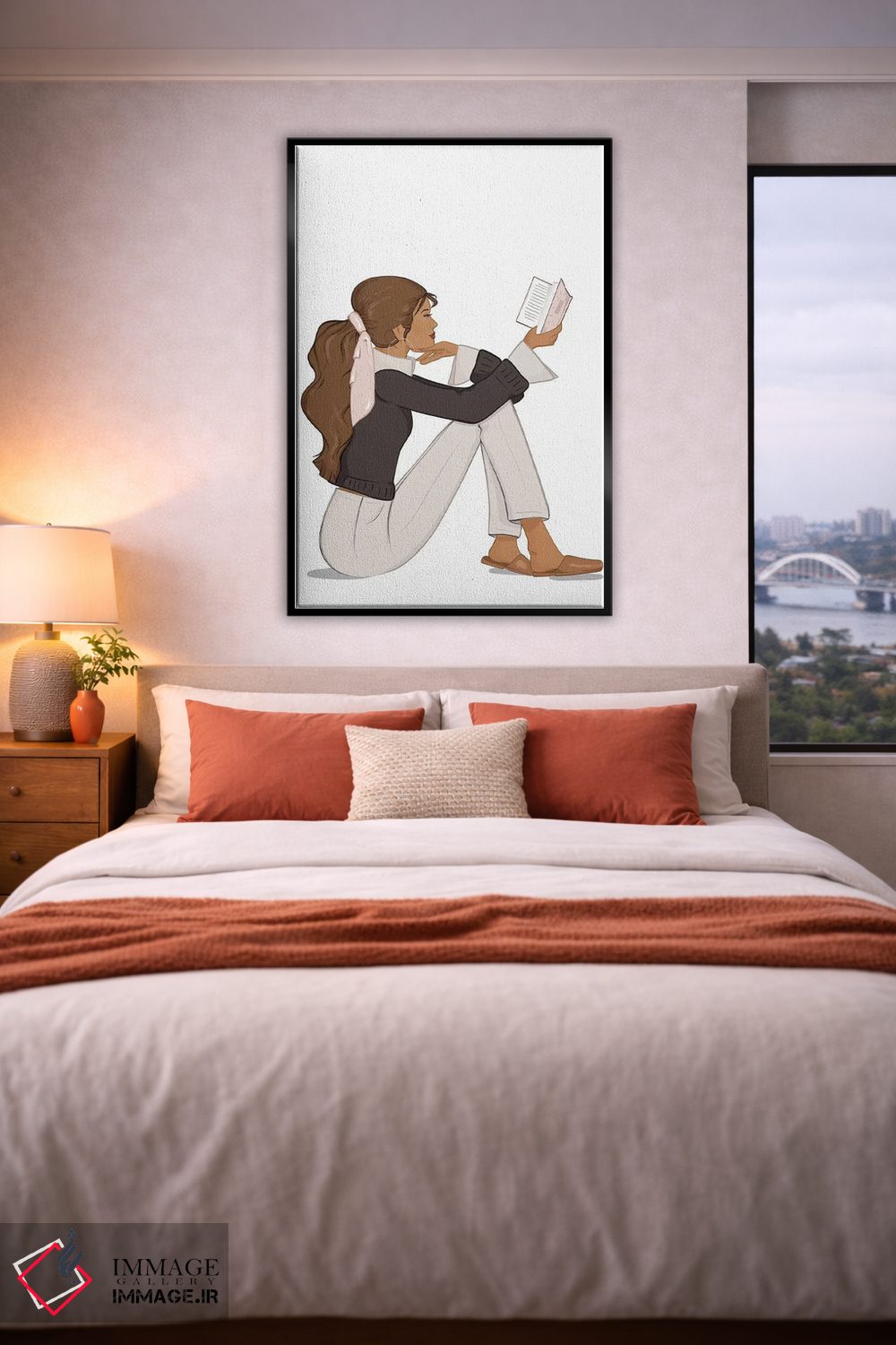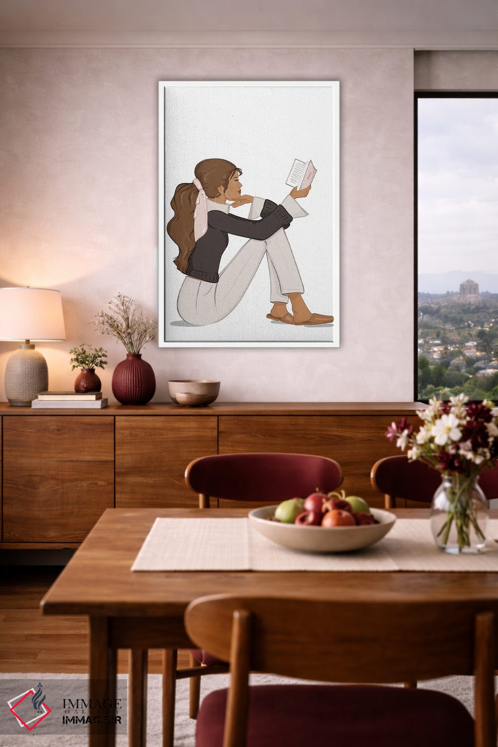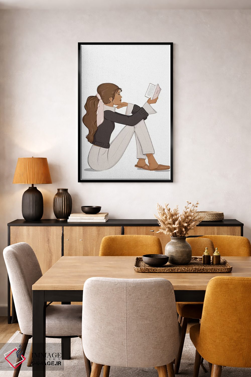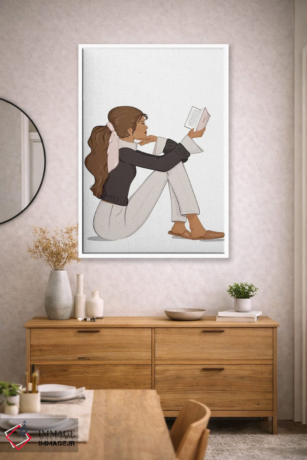 «Tanned، Brunette Hair، شیکِ کتابخوان، پوست برنزه، موهای قهوهای» اثرِ «سابینا فن» برای چیدمانهای صنعتی یا مدرنِ شهری هم مینشیند؛ چون تصویر، واضح و امروزی است.