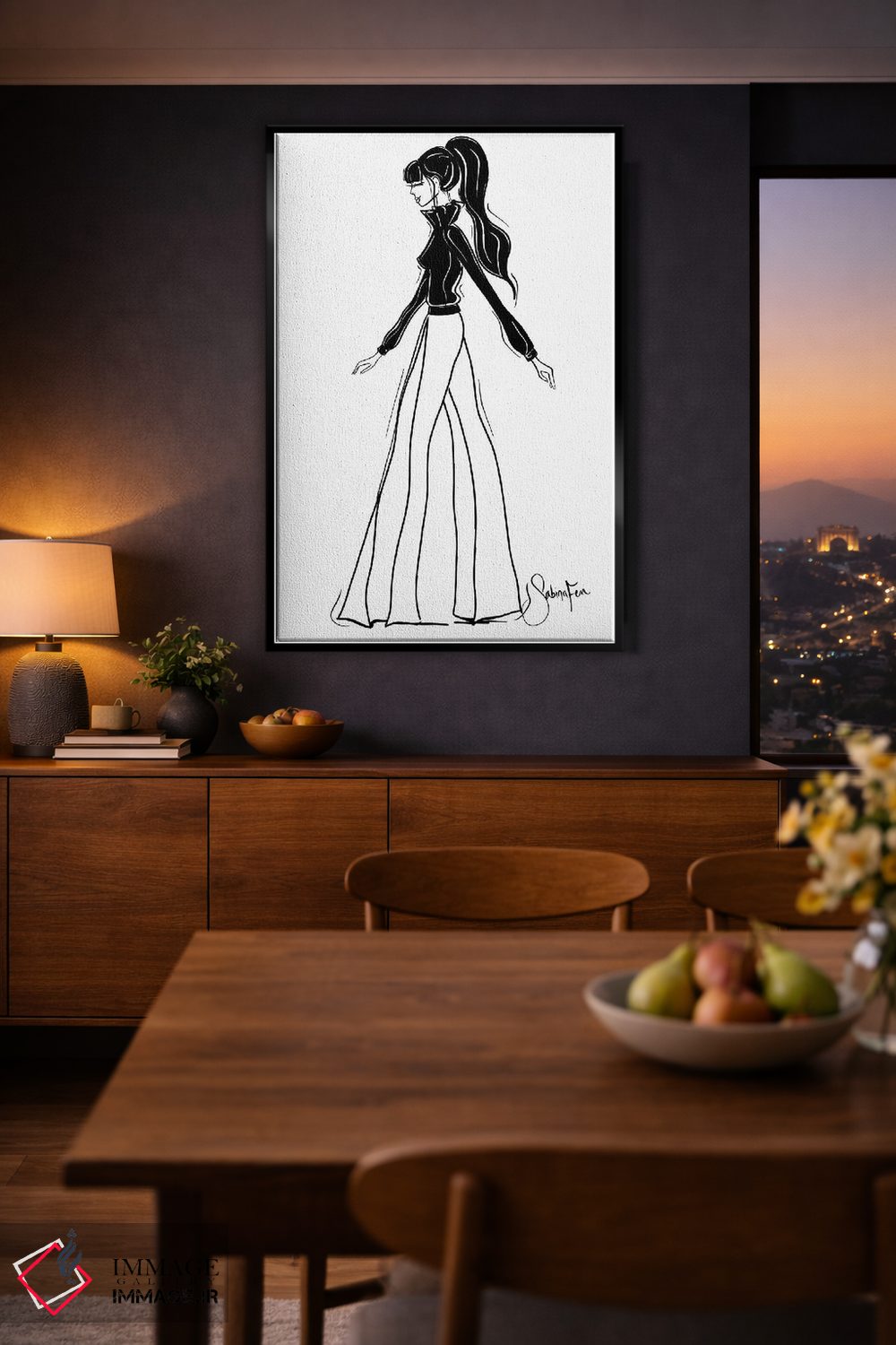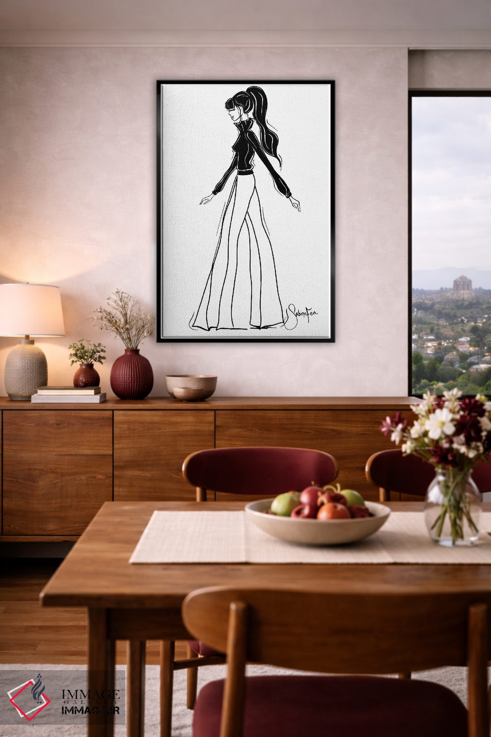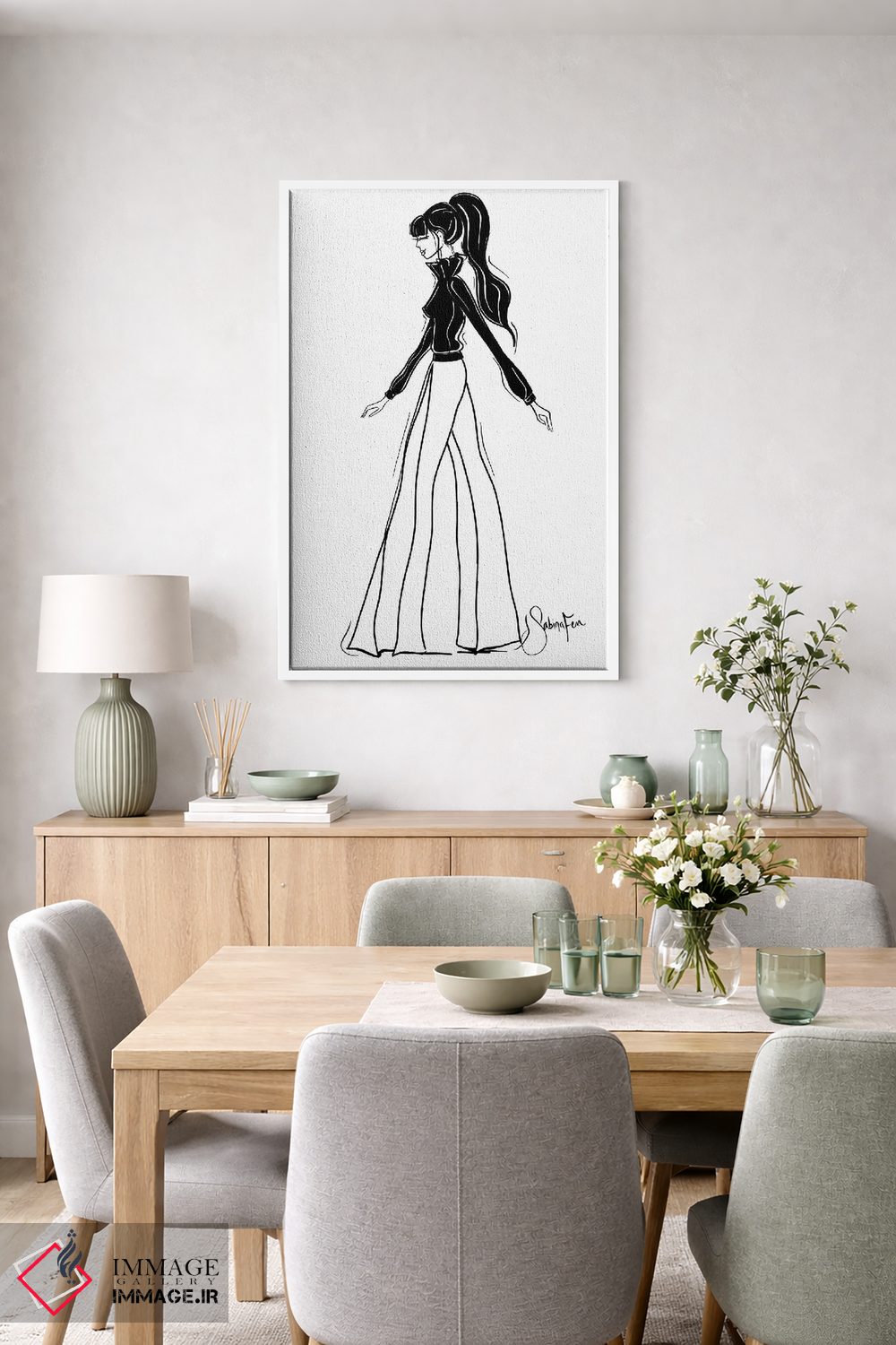 یک تابلوی مد—محور که با روایتی مینیمال و مرتب، حسِ سلیقه و انتخاب را به فضا اضافه میکند اثرِ «سابینا فن».