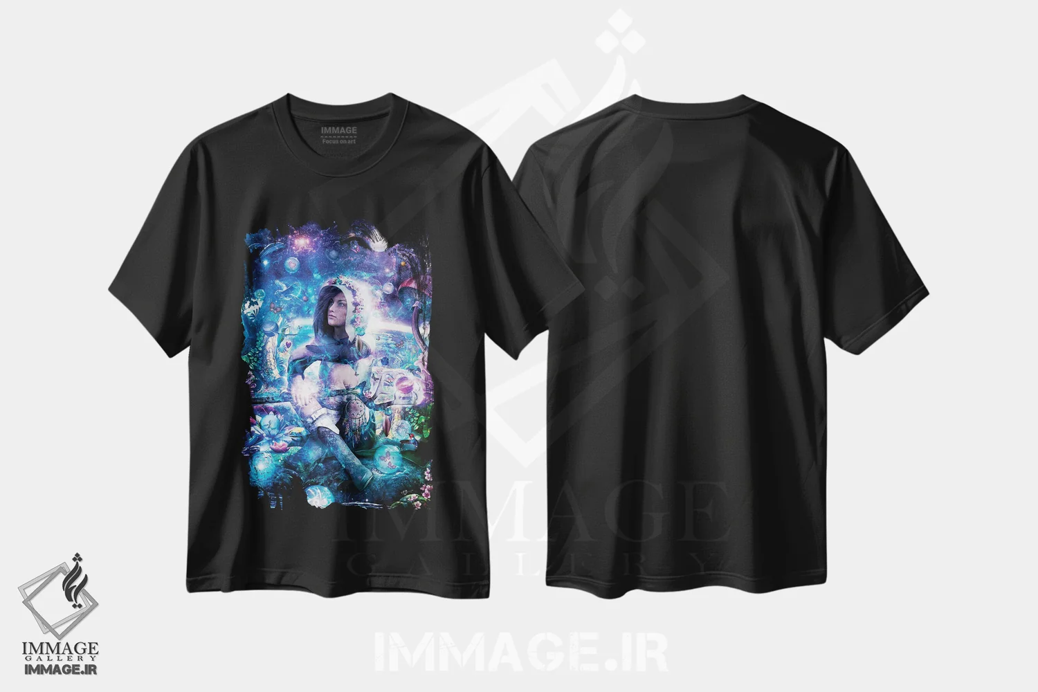 تیشرت مشکی طرح دار مشاهدهٔ هم افزایی آسمانی ما، هنر فاخر معاصر اثر کامرون گری | فروشگاه ایماژ