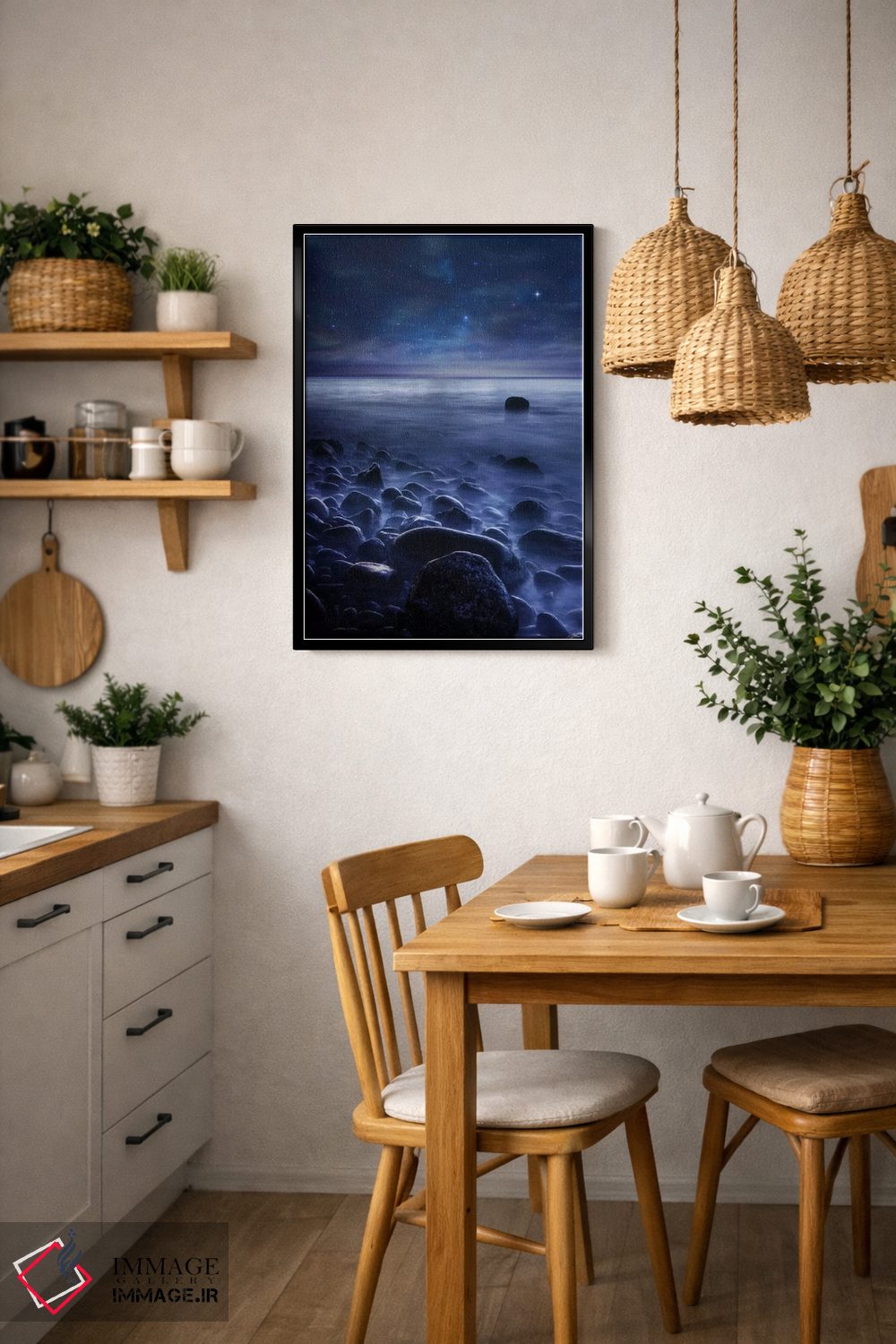 بوم گالری ایماژ طوری طراحی شده که اثر روی دیوار «پرداختشده» و حرفهای دیده شود—نه پرزرقوبرقِ بیپایه؛ بلکه دقیق و خوشپرداخت. بافت ظریف کنواس کمک میکند حس اثر هنری را در نگاه نزدیک نگه میدارد و در دکورهای مدرن و مینیمال خیلی خوب مینشیند. چاپ جیکلی (Giclée) کمک میکند گذارهای رنگی را نرمتر میکند و همین «پرداخت» تفاوت را میسازد. در نهایت، نتیجه چیزی شبیه تفاوت نسخهی معمولی با نسخهی باکیفیتتر است: نه رنگِ بیشتر، بلکه پرداخت بهتر؛ اگر فضا مینیمال است، همین پرداخت تمیز کافی است.
