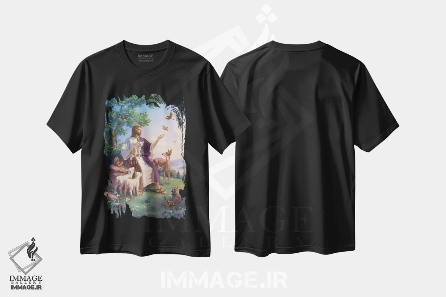 تیشرت مشکی طرح دار عیسی با حیوانات، مدیوم اثر کربرت گوتیه | immage.ir