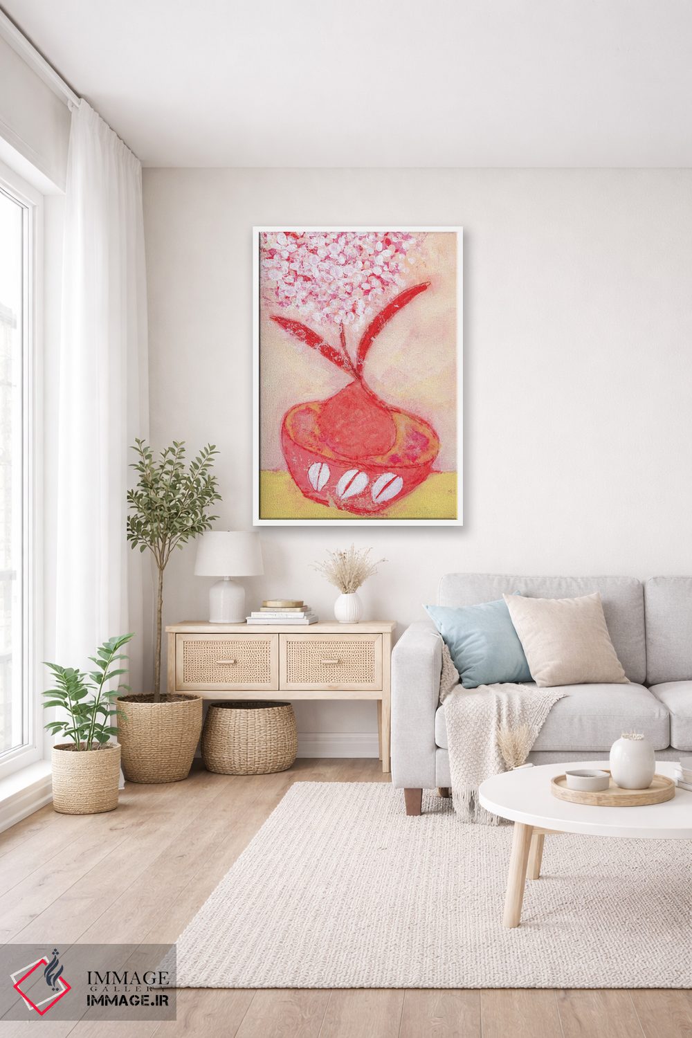 این تابلو اثرِ «ژانیا شاریپژانوا» با حس معاصر، کنار رنگهای خنثی و مبلمان ساده خوب مینشیند؛ موضوعِ این اثر هم فضا را کامل میکند.