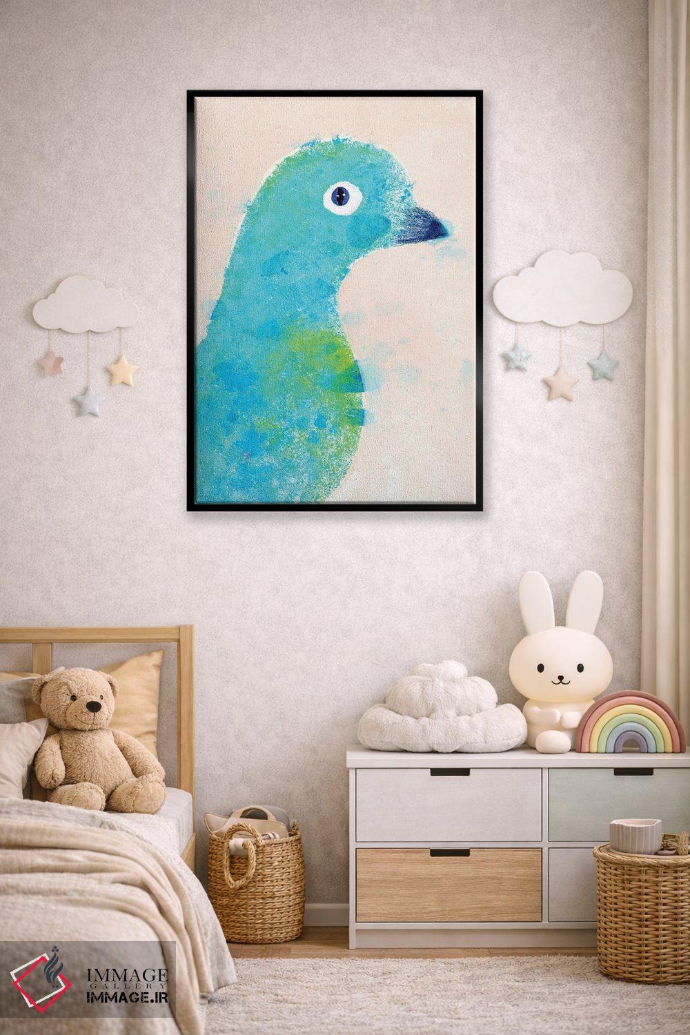 در «کبوتر» اثرِ «ژانیا شاریپژانوا»، حضور حیوانات به فضا، گرمیِ ملایم اضافه میکند؛ برای فضاهای روستیک یا بوهو انتخابی خوشسلیقه است. به دیوار، قصه میدهد—اما قصهای آرام و شیک.