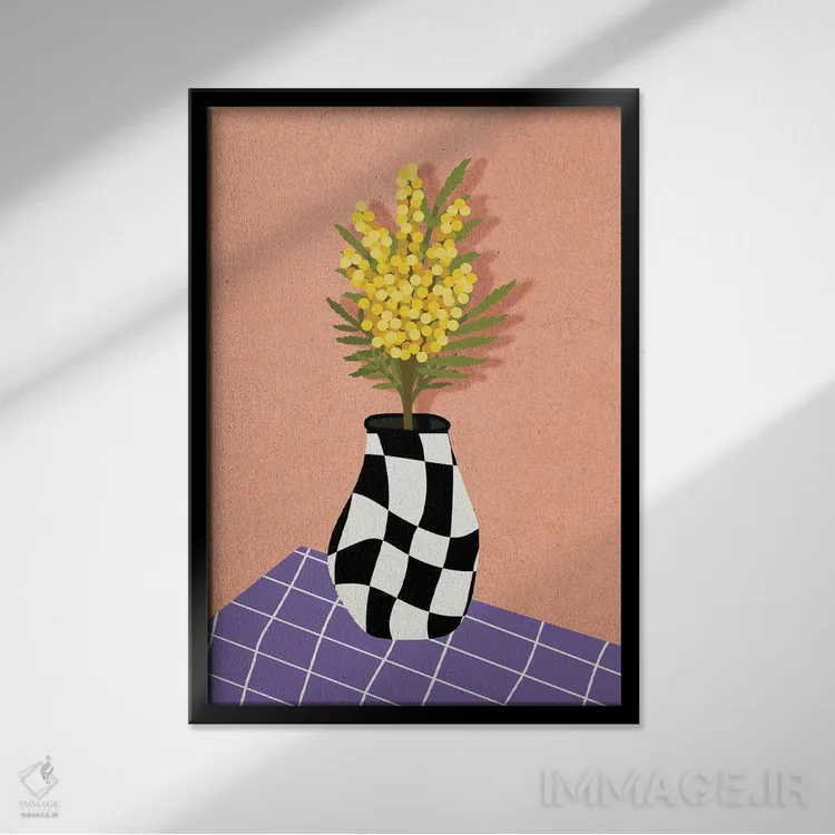 تابلو دکوراتیو طبیعت بی جان میموزای زرد اثر ژانیا شاریپژانوا - نمای قاب‌دار مشکی