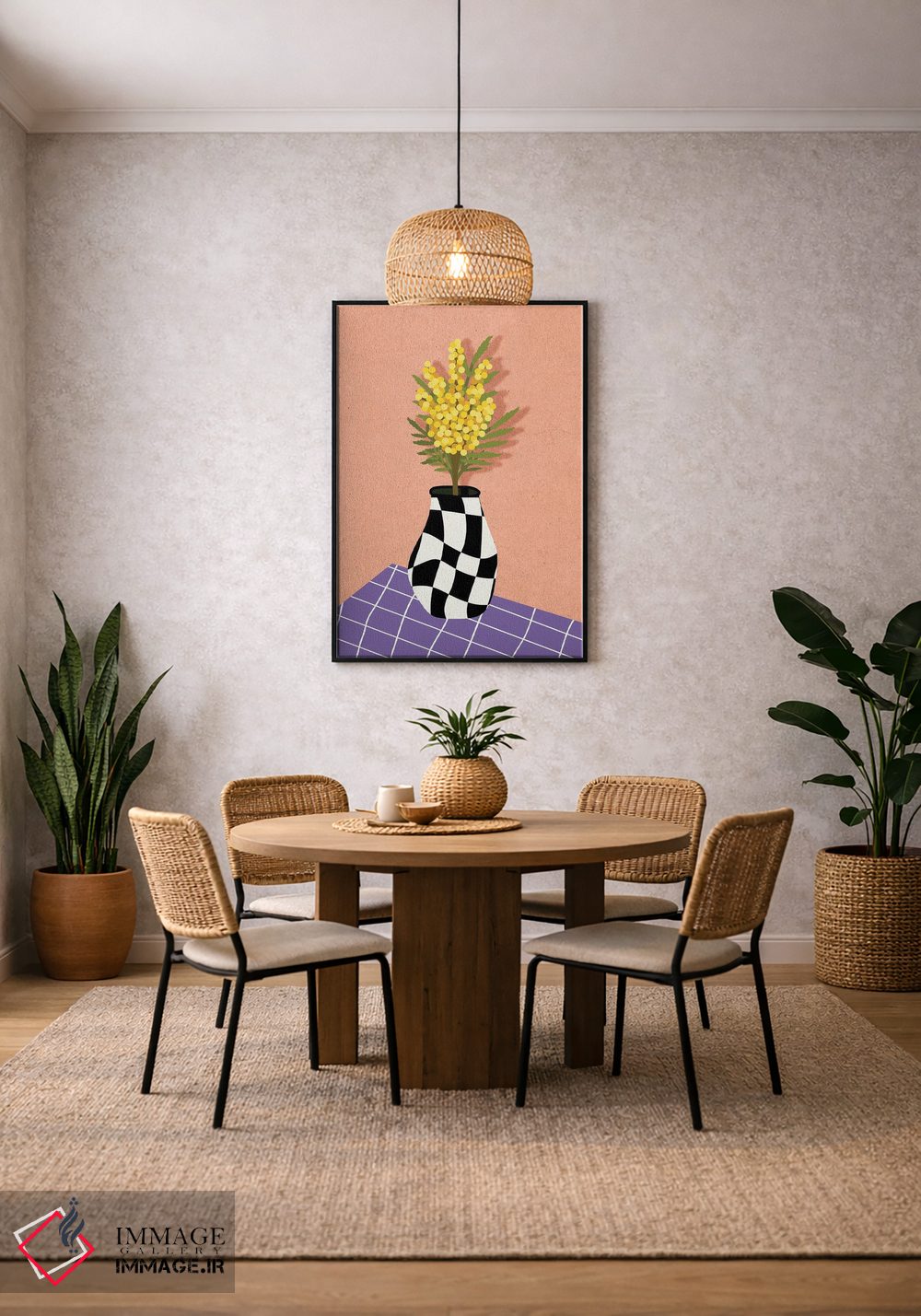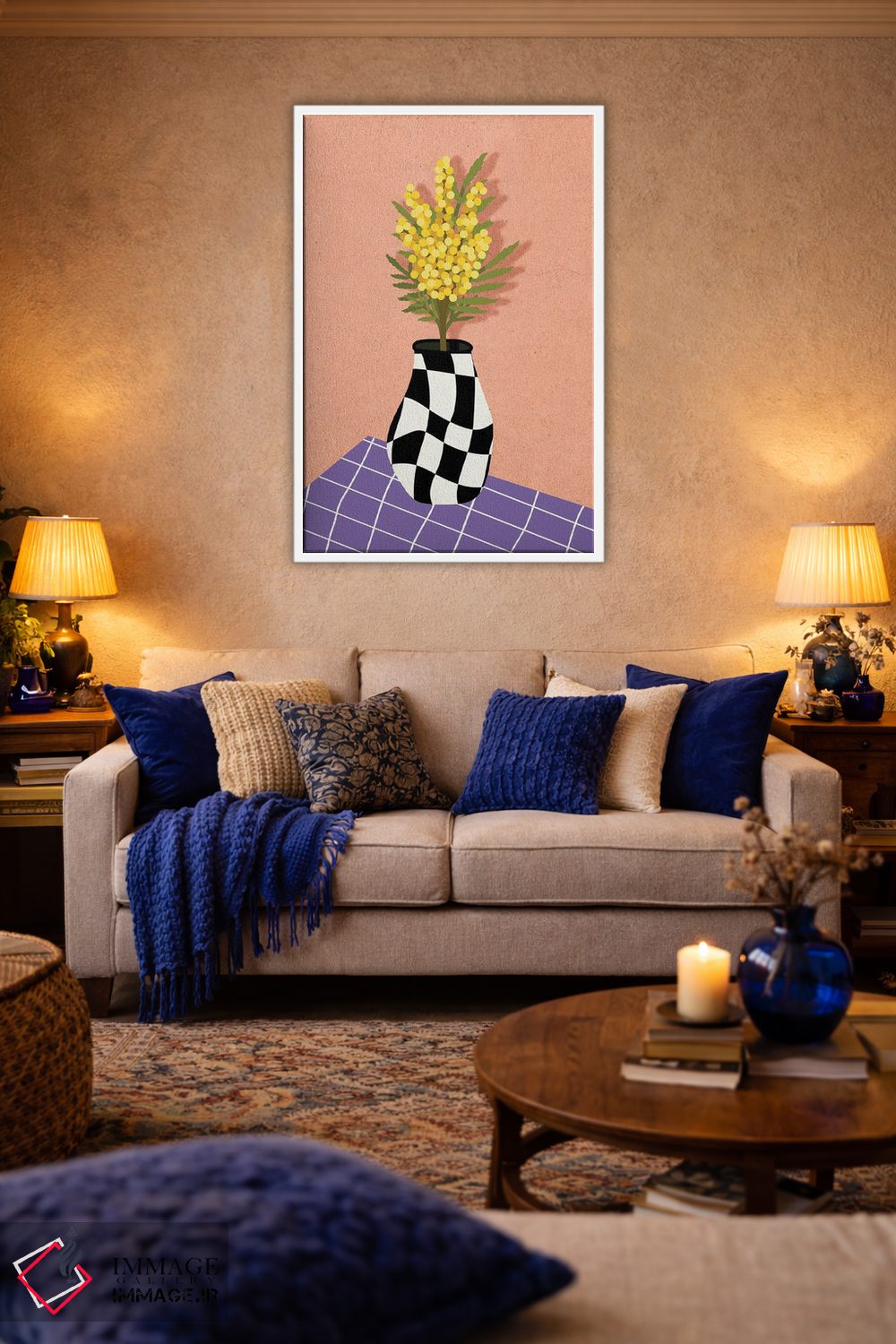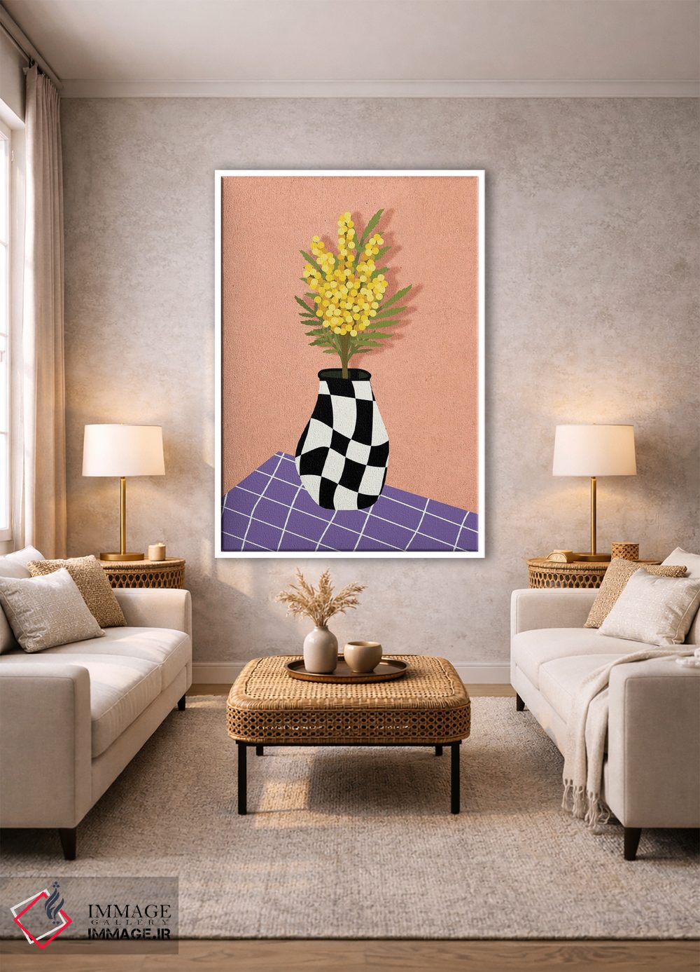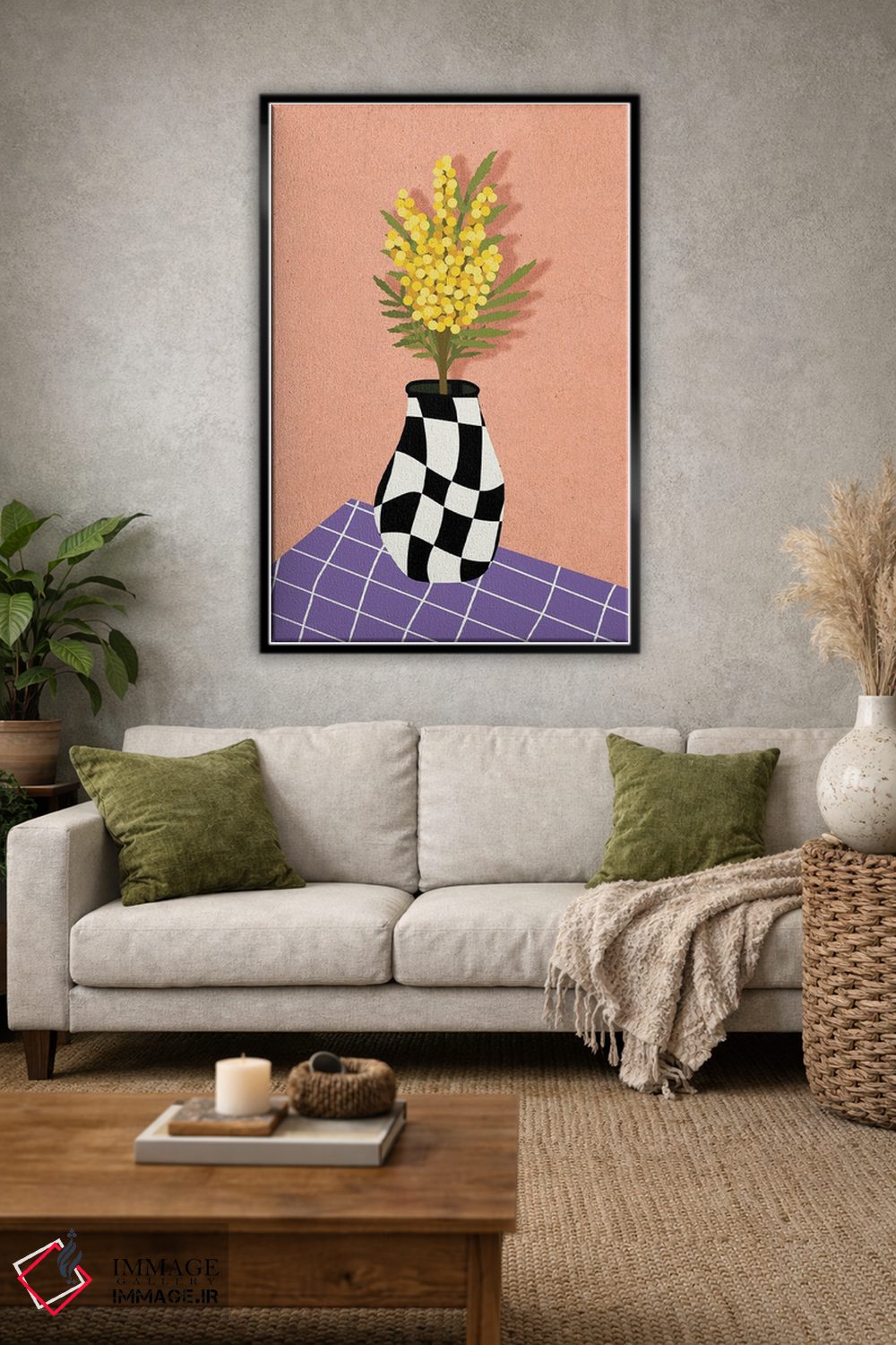 تابلو دکوراتیو طبیعت بی جان میموزای زرد اثر ژانیا شاریپژانوا - نمای روبه‌رو روی دیوار