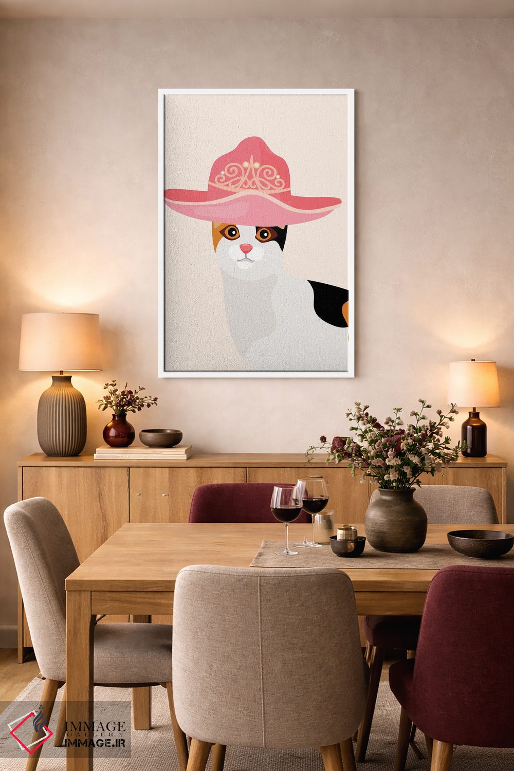 بوم گالری ایماژ نسخهی دکوراتیوِ سطحبالا از یک اثر هنری است؛ روی کنواس سفیدِ یکدست و بدون اسید با چاپ هنری به استاندارد جیکلی (Giclée) با رنگدانههای آرشیوی و سیستم رنگ دقیق؛ روی دیوار، کار یکدستتر و خوشکیفیتتر دیده میشود. اسمبل تمیز و آمادهی نصب؛ کشیدگی استاندارد روی کلاف و یراق مناسب.