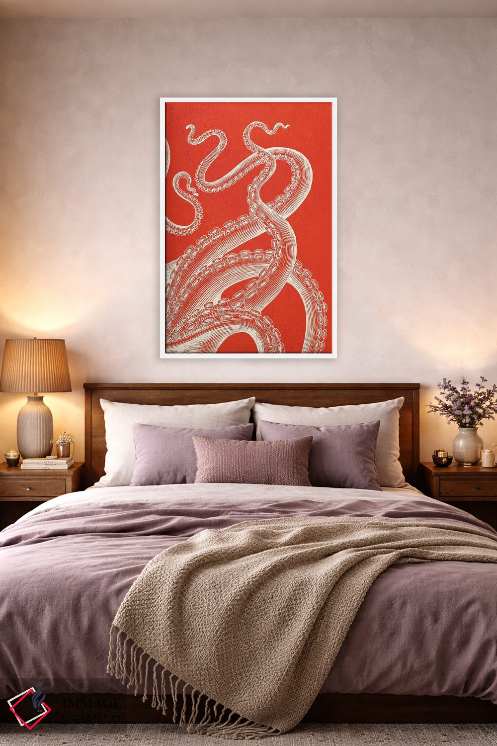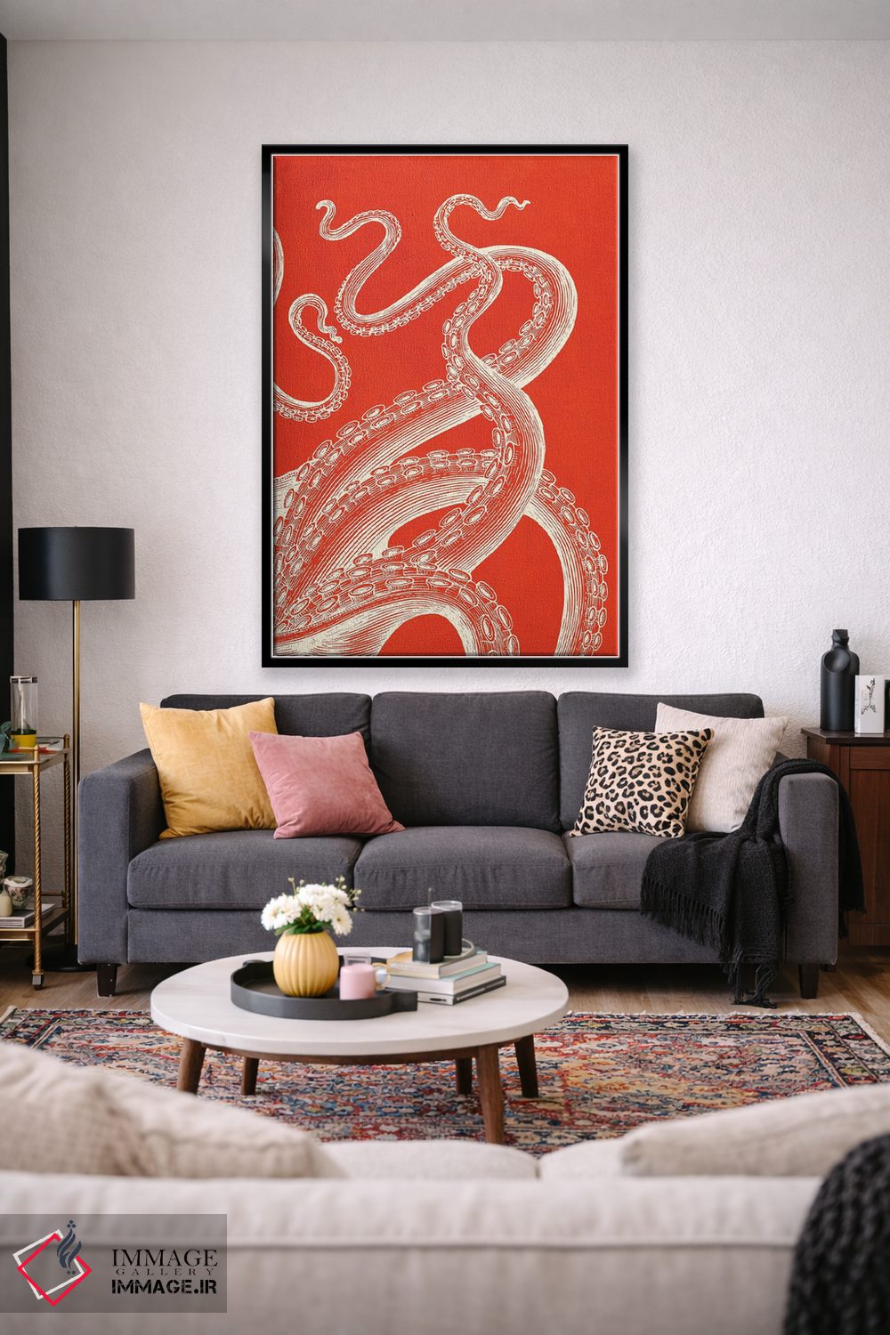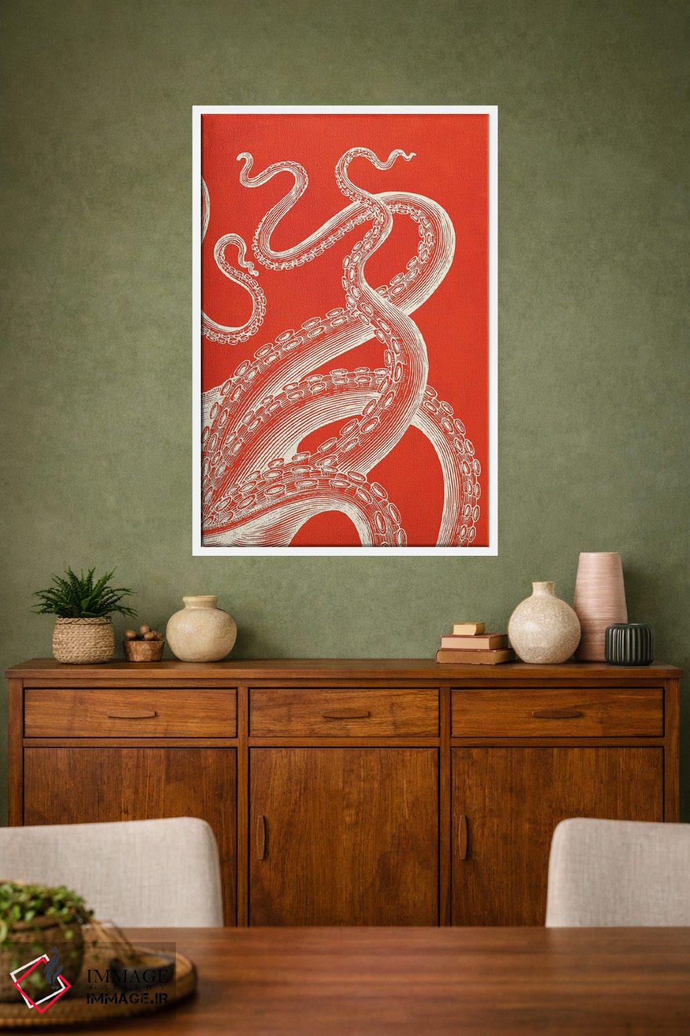در «کراکن روی مرجان (هیولای افسانهای دریایی)» اثرِ «ژانیا شاریپژانوا»، حضور حیوانات به دیوار، انرژیِ نرم و زنده میدهد؛ برای خانههایی با چوب و پارچههای گرم انتخابی خوشسلیقه است. در کنار گیاهان و نور طبیعی، جذابتر هم میشود.