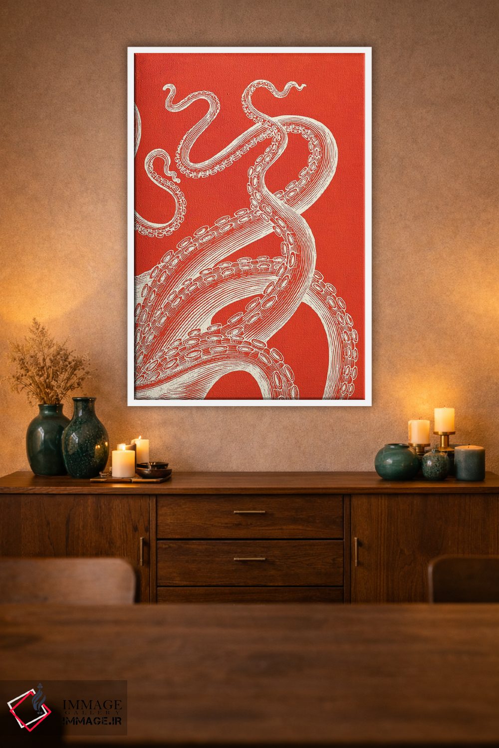 براساس پالت گرم اثر، قاب تیک گرم (چوبی) پیشنهاد اول است و مشکی مات (فریم متوسط) مکمل. برای سفارشهای پروژهای با ابعاد و قابهای اختصاصی با ایماژ در تماس باشید.