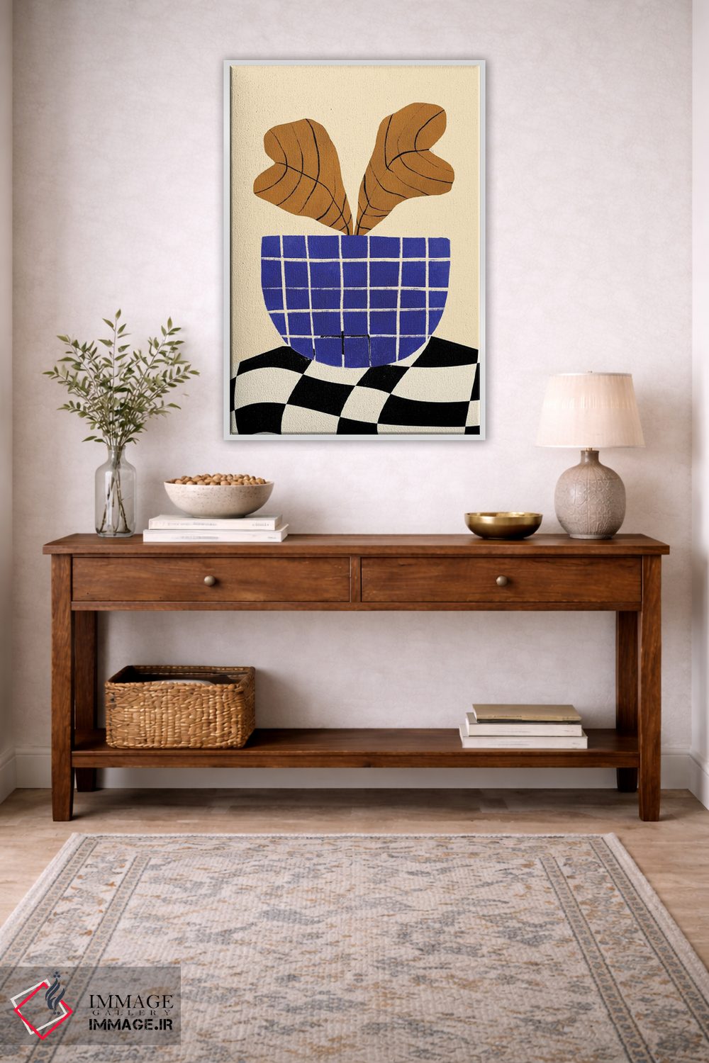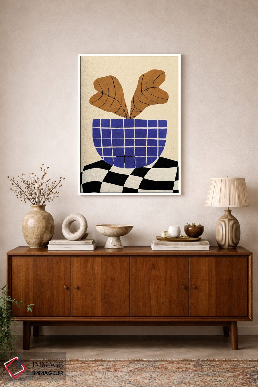 بوم گالری ایماژ طوری طراحی شده که اثر روی دیوار «پرداختشده» و حرفهای دیده شود—نه پرزرقوبرقِ بیپایه؛ بلکه دقیق و خوشپرداخت. بافت ظریف کنواس کمک میکند حس اثر هنری را در نگاه نزدیک نگه میدارد بدون اغراق؛ فقط دقیقتر. چاپ جیکلی (Giclée) کمک میکند برای آرتپرینتهای جدی استاندارد رایج است و نتیجه را یکدستتر میکند. حاصل کار، یک تابلو خوشنشین است که هم از دور اثرگذار است و هم از نزدیک خوشخوان؛ در کنار نورپردازی درست، جلوهی گالریوار بیشتری حس میشود. در دیوارهای خنثی (سفید، کرم، طوسی روشن) اثر تمیزتر خودش را نشان میدهد.