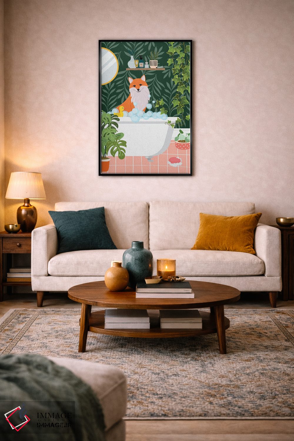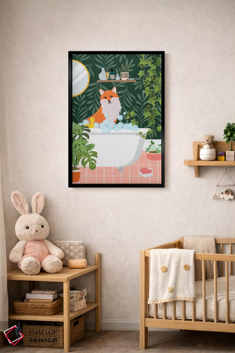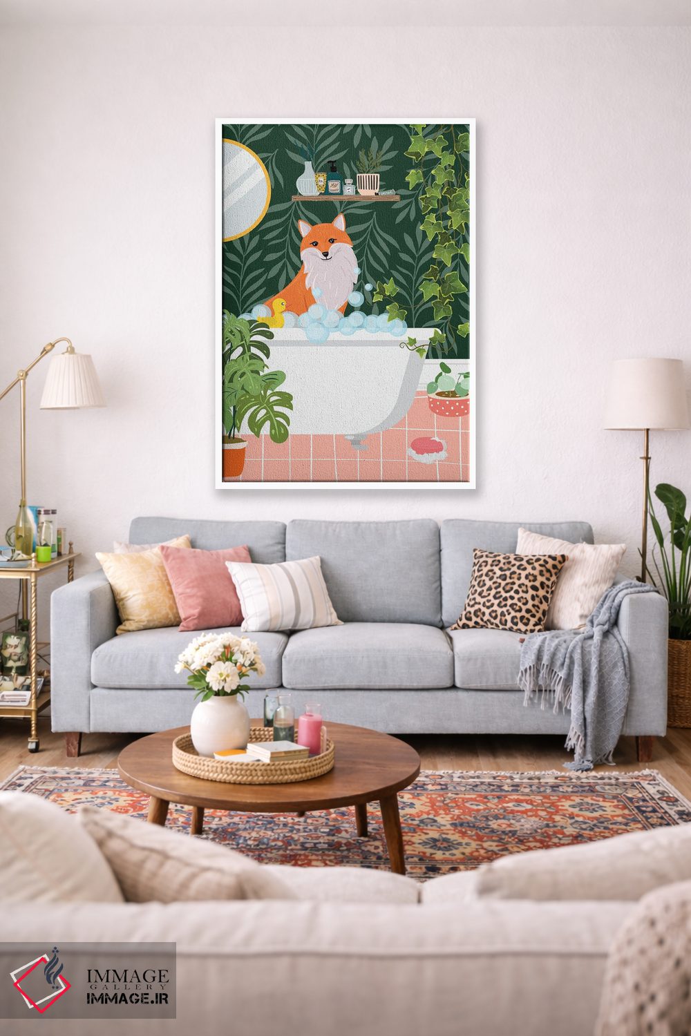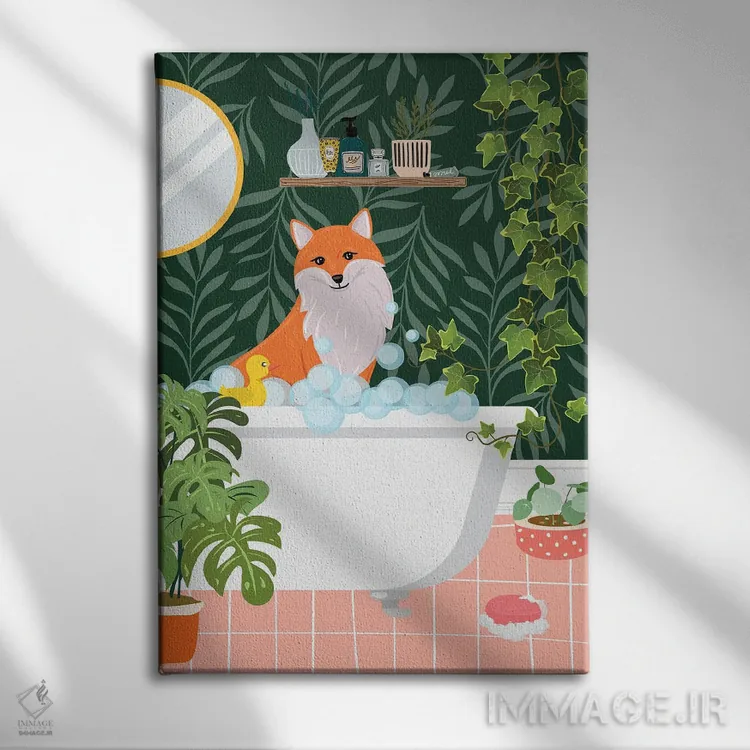 تابلو دکوراتیو روباه در حال حمام گرفتن در حمام گیاهی اثر ژانیا شاریپژانوا