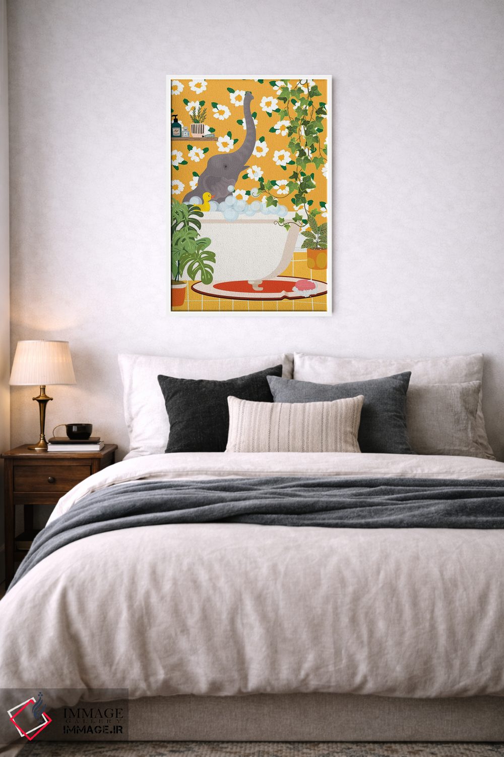 این اثر با عنوان «فیل بچه در وان حمام» اثرِ «ژانیا شاریپژانوا» حس طبیعت را بیدغدغه وارد خانه میکند؛ برای نشیمنهای خانوادگی انتخابی خوشسلیقه است. حسش صمیمی است، اما کیفیتش جدی و خوشپرداخت.