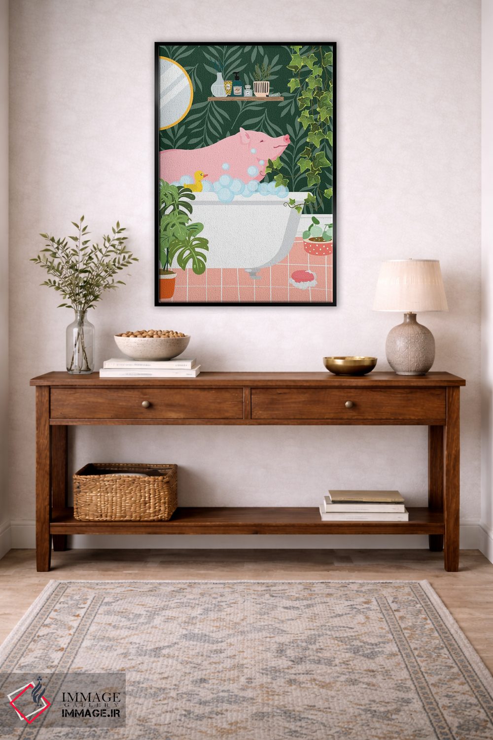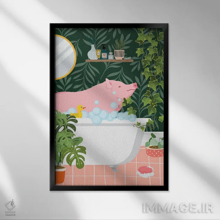 تابلو دکوراتیو خوک در حال حمام گرفتن در حمام گیاهی اثر ژانیا شاریپژانوا