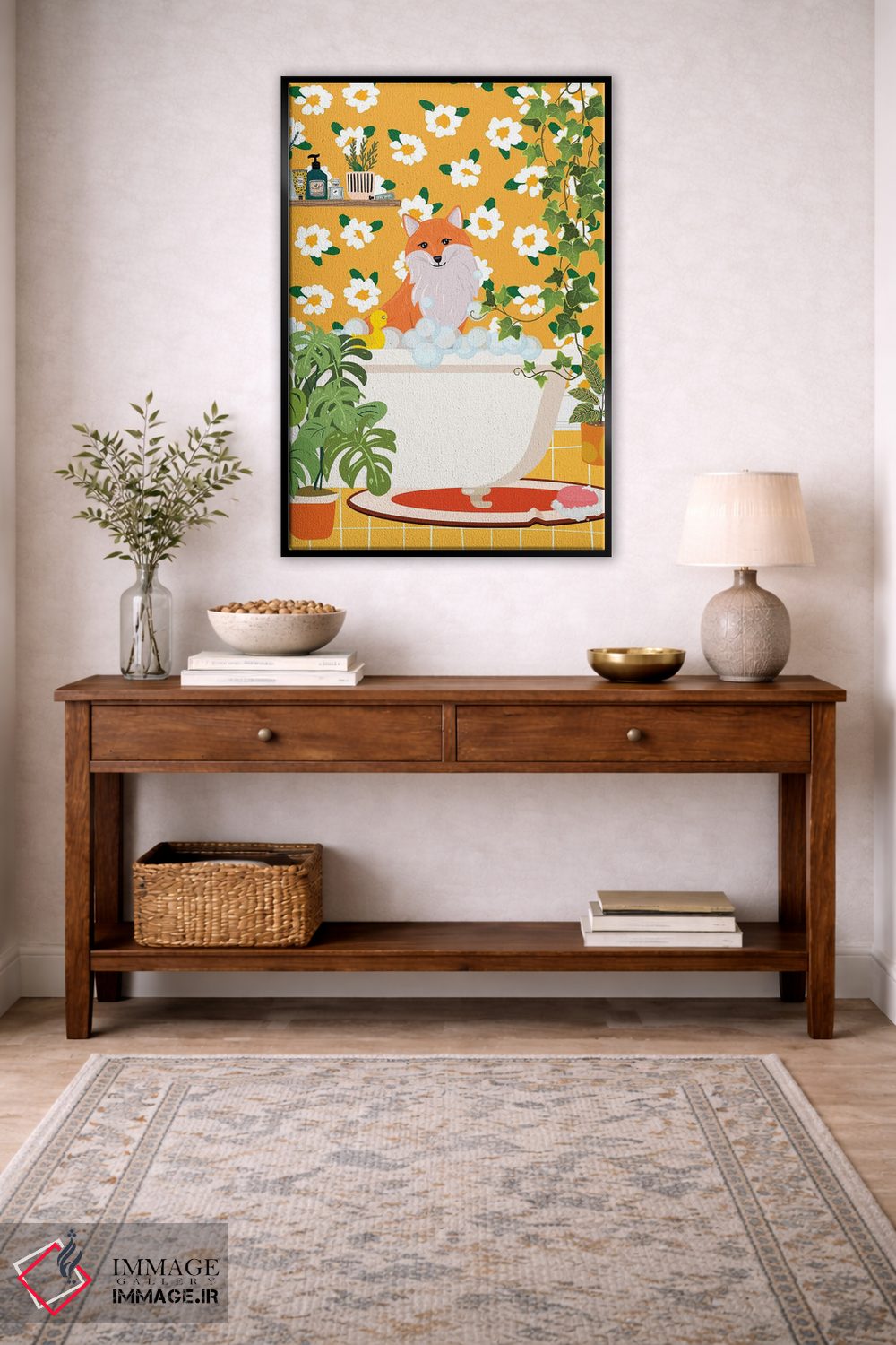 برای دیوارهای ساده، «روباه در وان حمام» اثرِ «ژانیا شاریپژانوا» بافت و جزئیات را طوری نشان میدهد که نگاه میماند؛ برای نشیمنهای خانوادگی انتخابی خوشسلیقه است. به دیوار، قصه میدهد—اما قصهای آرام و شیک.