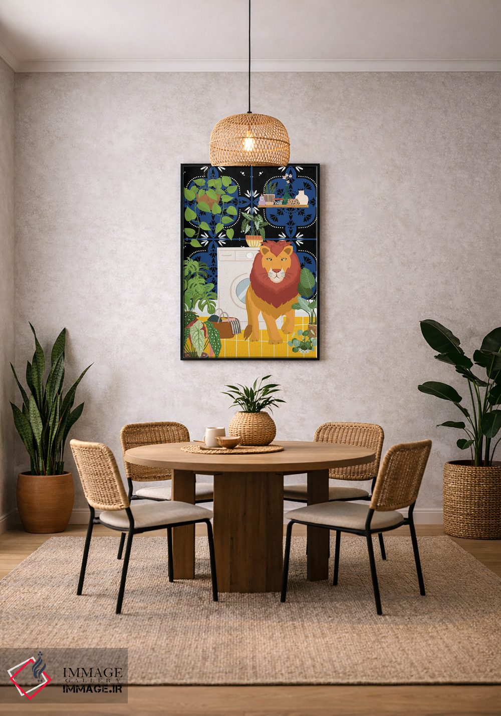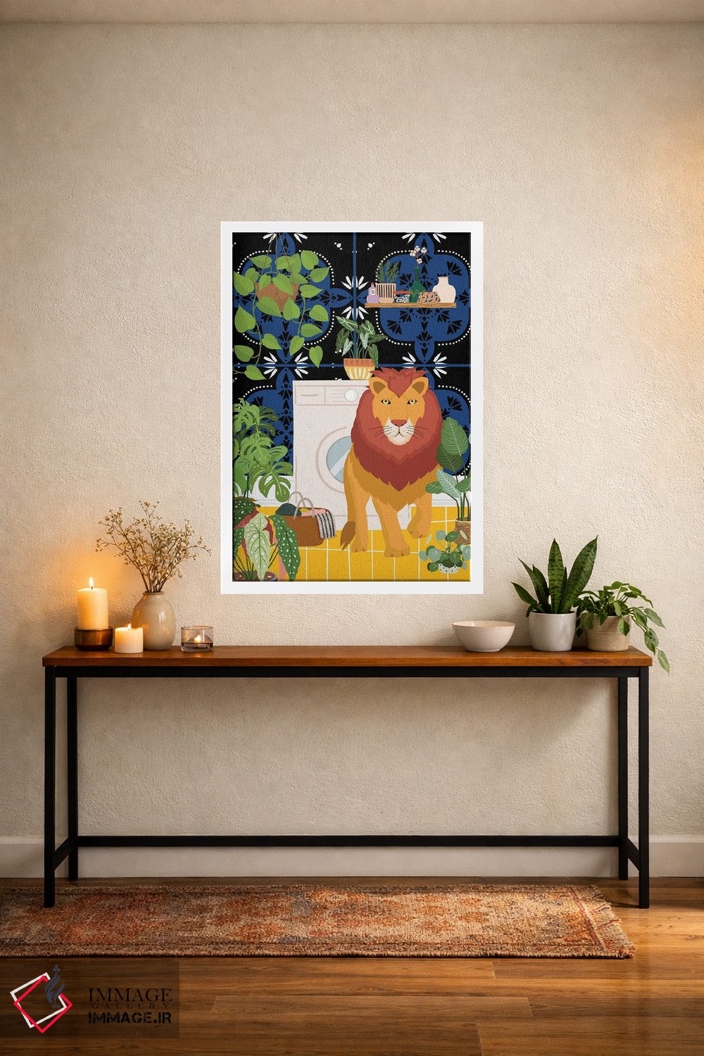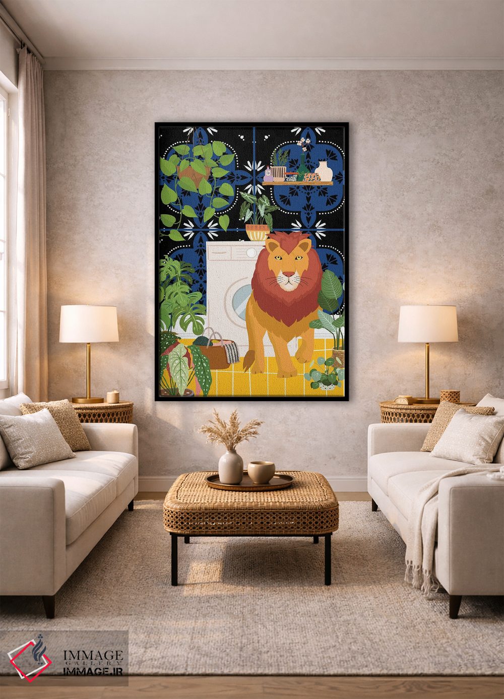 برای دیوارهای ساده، «شیر در اتاق لباسشویی مراکشی من» اثرِ «ژانیا شاریپژانوا» یک لبخند ریز به چیدمان میدهد؛ برای دکورهای مدرن و مینیمال انتخابی خوشسلیقه است. برای دیوار گالریوار هم گزینهٔ خوبیست.