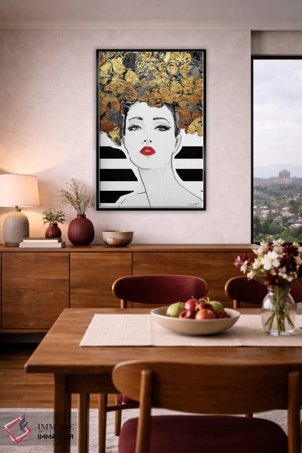 براساس پالت گرم اثر، قاب تیک گرم (چوبی) پیشنهاد اول است و مشکی مات (فریم متوسط) مکمل. برای سفارشهای پروژهای با ابعاد و قابهای اختصاصی با ایماژ در تماس باشید.