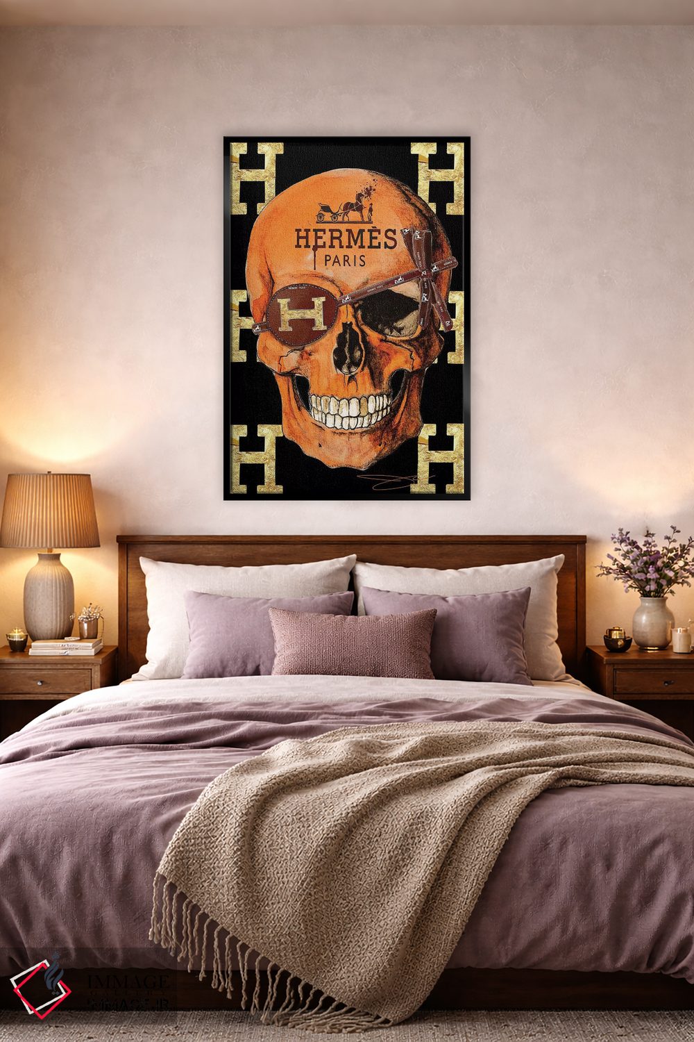 تابلو دکوراتیو جمجمه هرمس اثر استودیو وان - نمای روبه‌رو روی دیوار