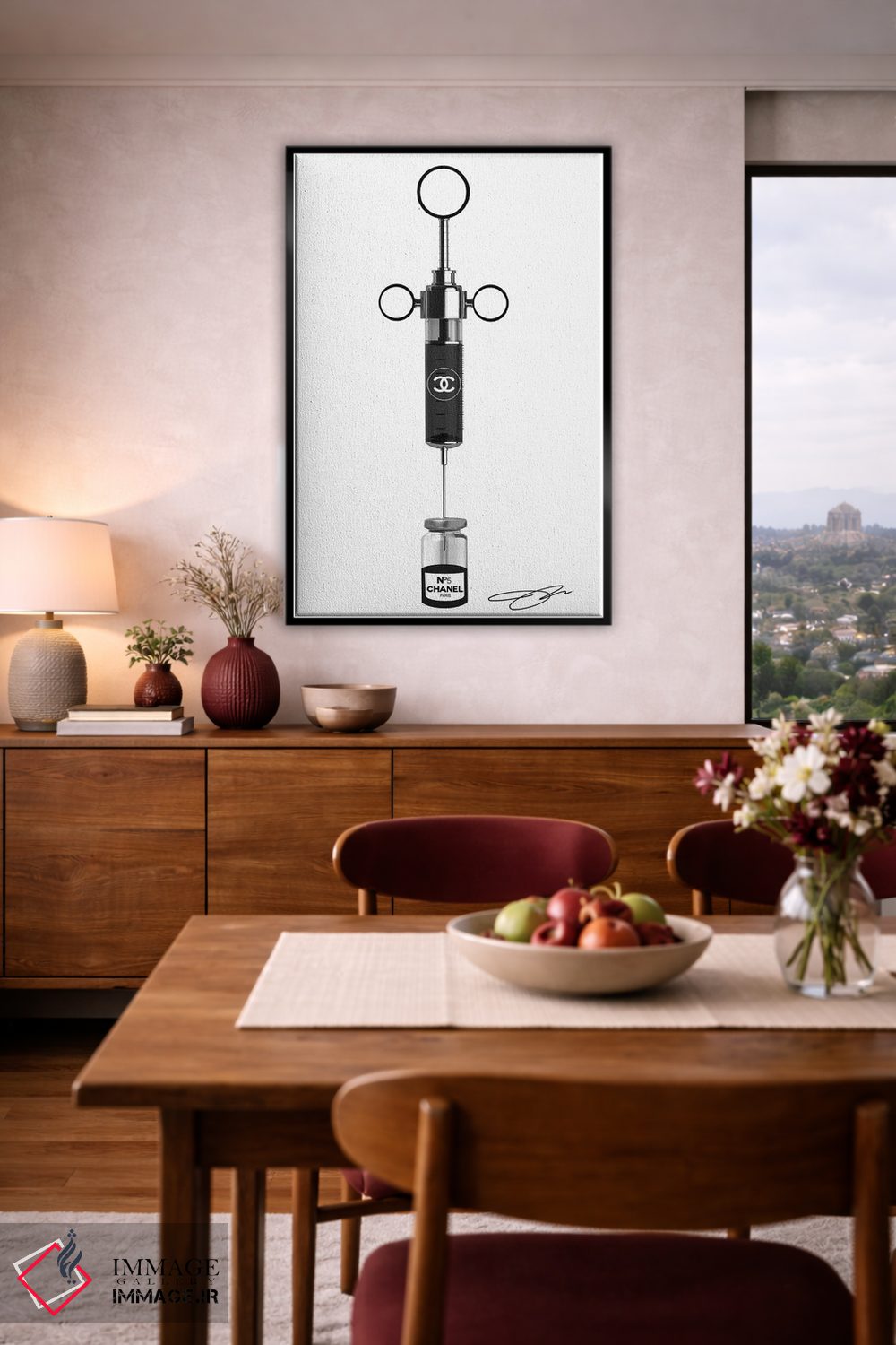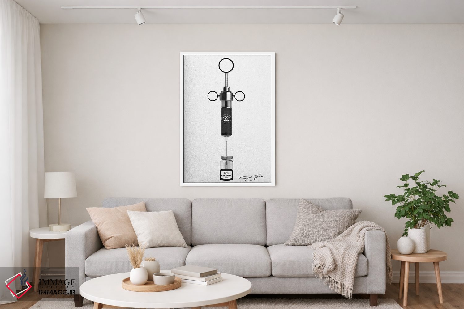 این تابلو با عنوان «شات شنل (اشاره به نوشیدنی یا نماد برند)» اثرِ «استودیو وان»، کنار آینه و رختکن یا اتاق لباس عالی مینشیند.