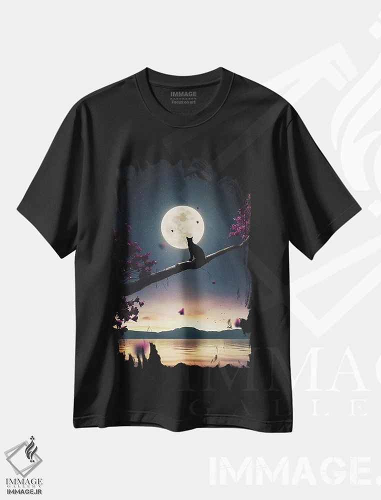 تی شرت «گربه سیاه و ماه»؛ فانتزی شبانه