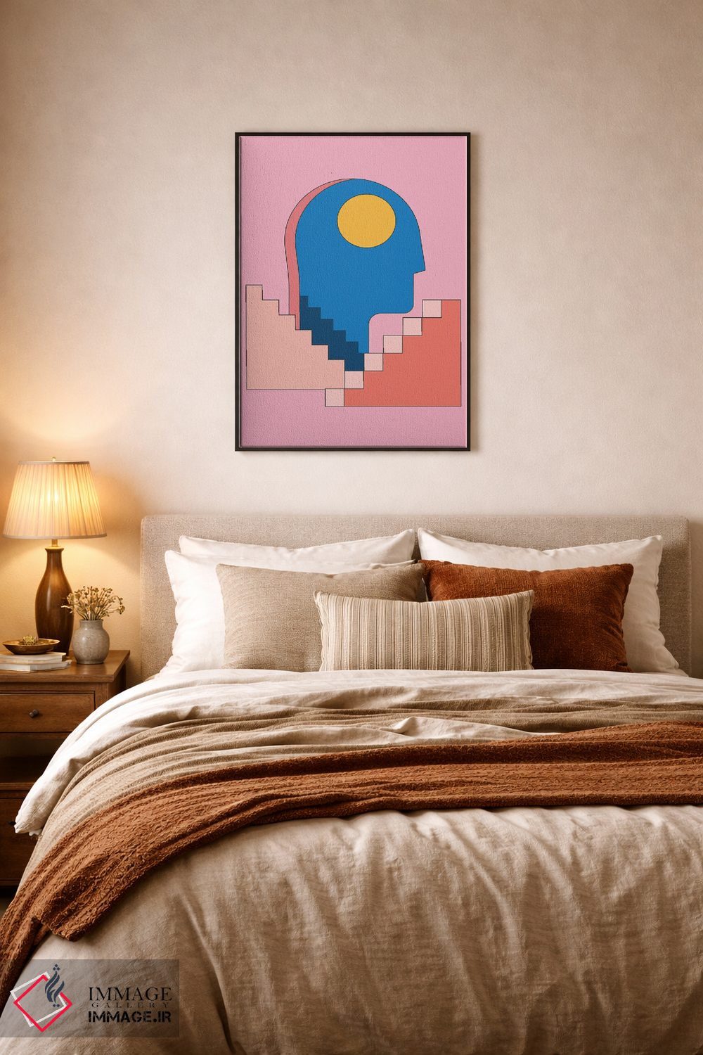 براساس پالت ترکیبی اثر، قاب تیک گرم (چوبی) پیشنهاد اول است و مشکی مات (فریم متوسط) مکمل. برای سفارشهای پروژهای با ابعاد و قابهای اختصاصی با ایماژ در تماس باشید.