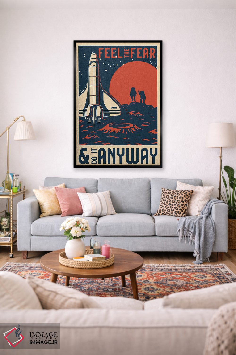 اگر ابعاد دیوار را دارید، راهنمایی لازم را دریافت میکنید تا نتیجه حرفهایتر دیده شود. بهشرطی که اثر در فضا «جسور و چشمگیر» دیده شود، انتخاب قاب مناسب کمک بزرگی است و جلوهی گالریوار بیشتری میدهد.