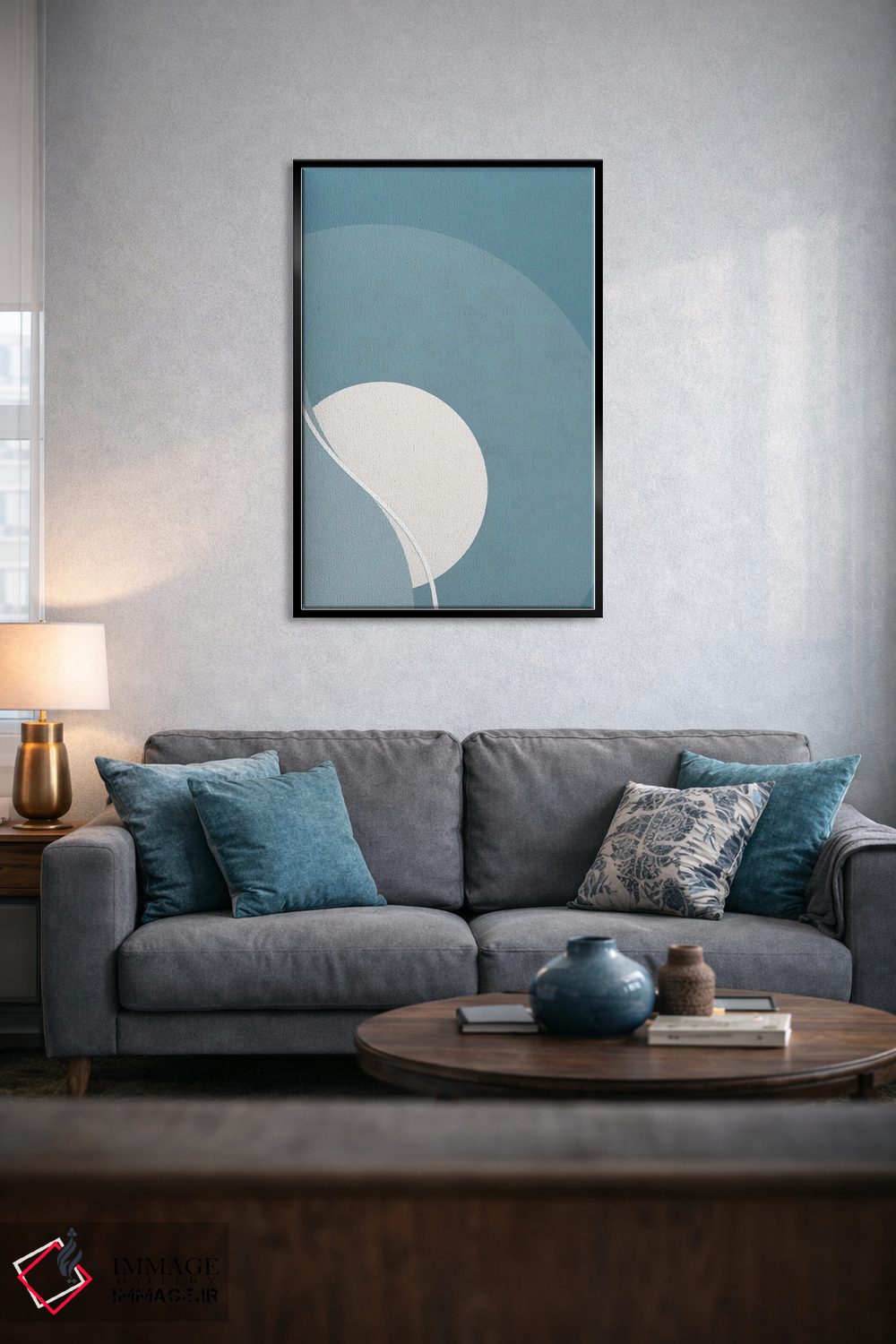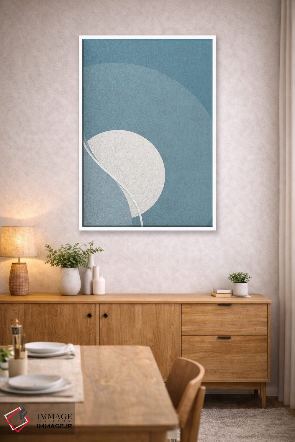 براساس پالت سرد اثر، قاب سفید مات (فریم باریک) پیشنهاد اول است و نقرهای برسخورده (متالیک) مکمل. برای سفارشهای پروژهای با ابعاد و قابهای اختصاصی با ایماژ در تماس باشید.