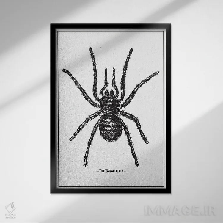 تابلو دکوراتیو عنکبوت تارانتیولا اثر جی استنلی - نمای قاب‌دار مشکی