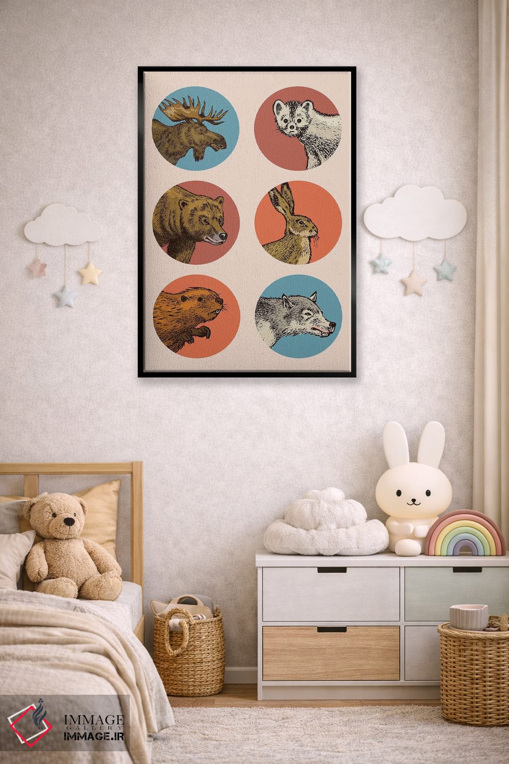 این اثر با عنوان «دایرههای حیوانات» اثرِ «جی استنلی» یک لبخند ریز به چیدمان میدهد؛ برای فضاهای روستیک یا بوهو انتخابی خوشسلیقه است. حسش صمیمی است، اما کیفیتش جدی و خوشپرداخت.