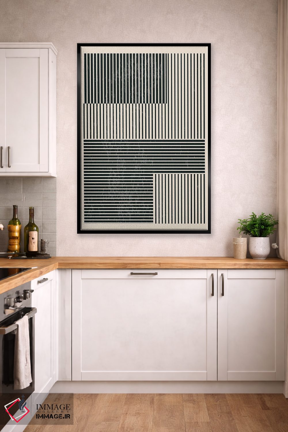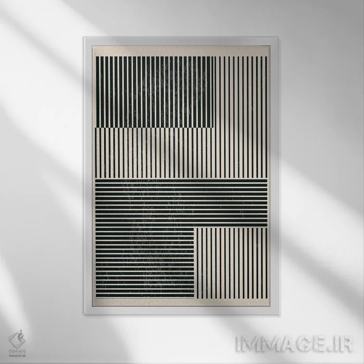 «اشکال هندسی سیاه و سفید IV» اثرِ «جی استنلی» در فضای هنری، بیشتر از روایت مستقیم، روی حس و فرم تکیه دارد؛ مناسب برای دکورهای مدرن.