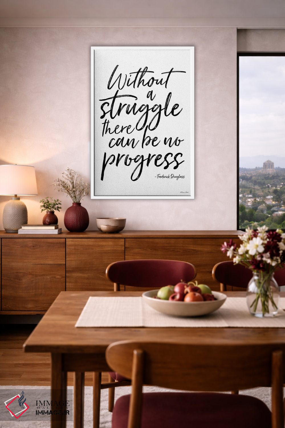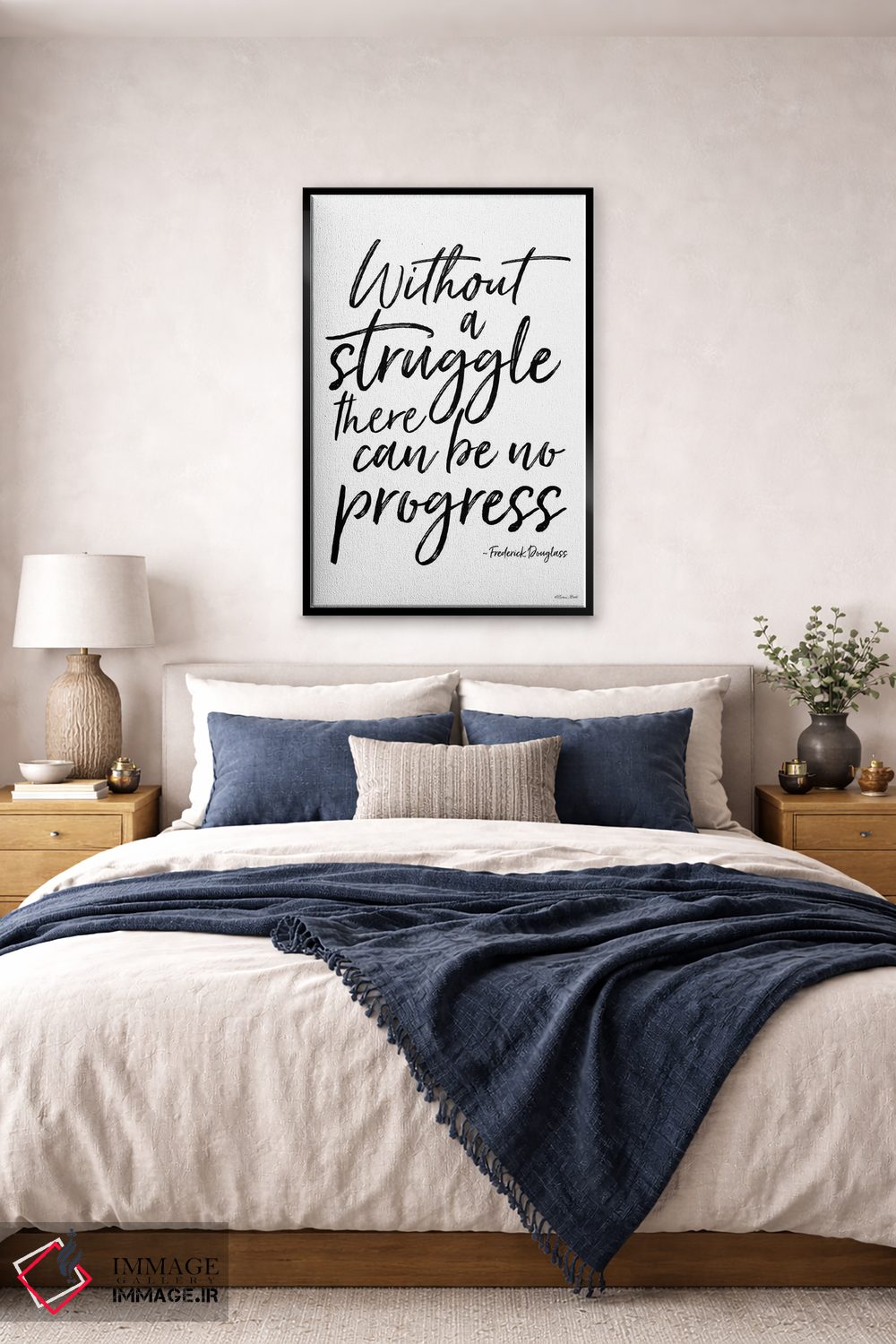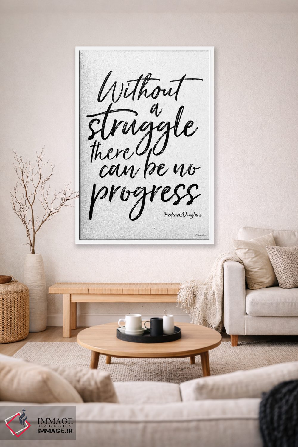 براساس پالت خنثی اثر، قاب مشکی مات (فریم باریک) پیشنهاد اول است و سفید مات (فریم باریک) مکمل. برای سفارشهای پروژهای با ابعاد و قابهای اختصاصی با ایماژ در تماس باشید.