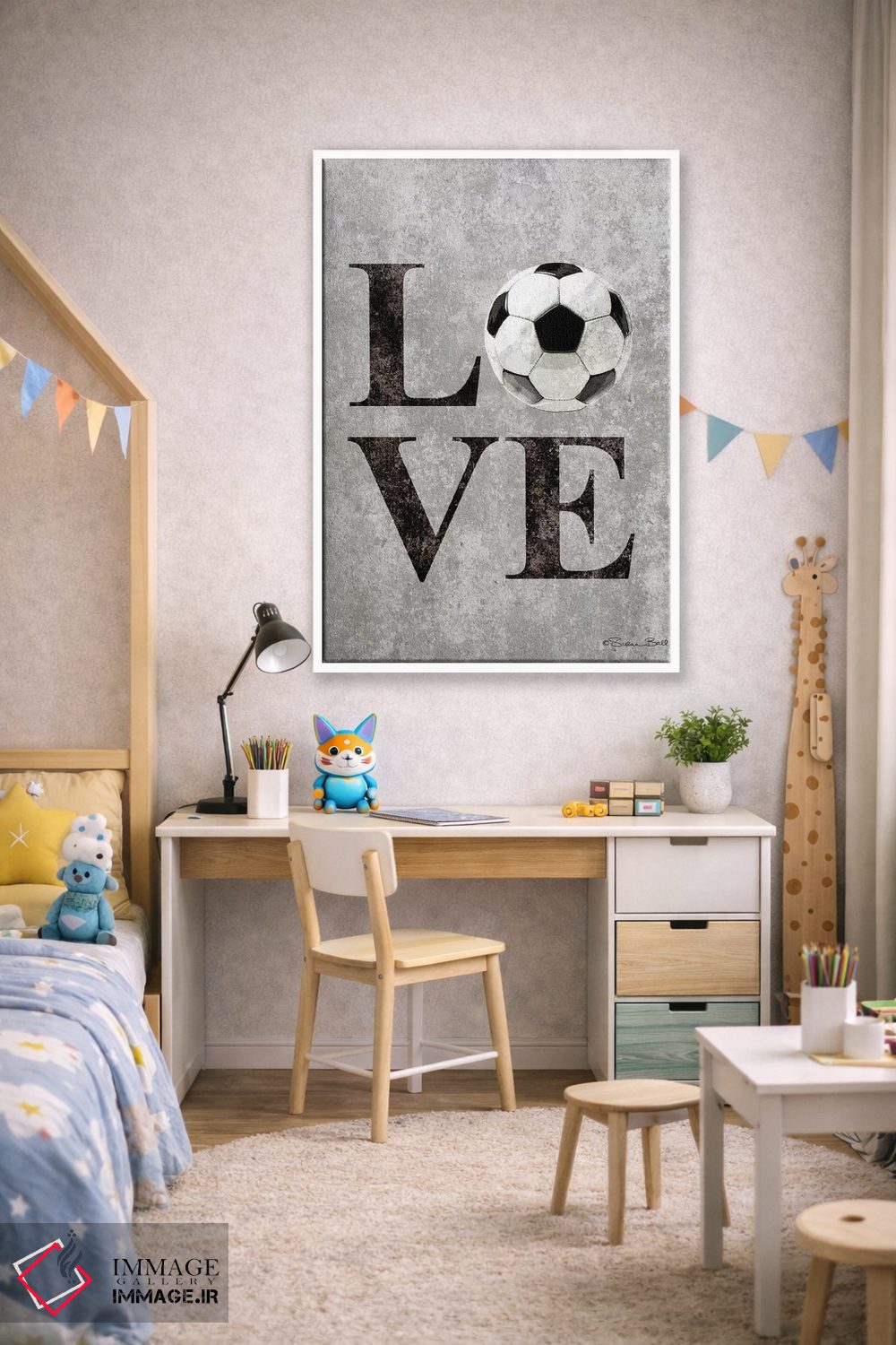 تابلو دکوراتیو عشق به فوتبال اثر سوزان بال - نمای روبه‌رو روی دیوار
