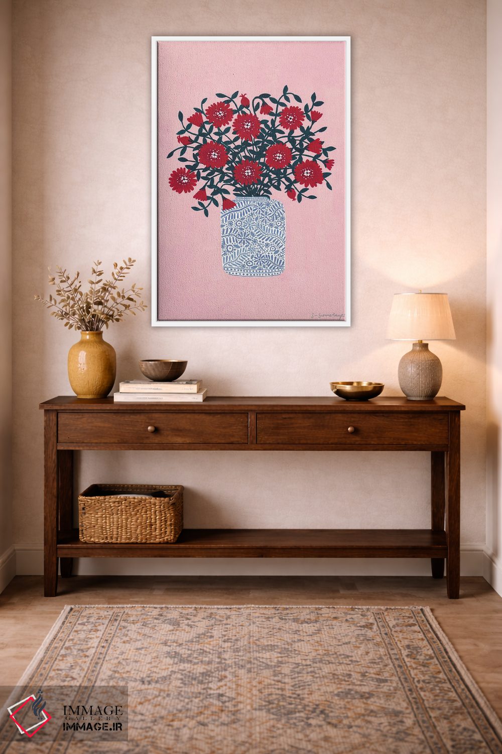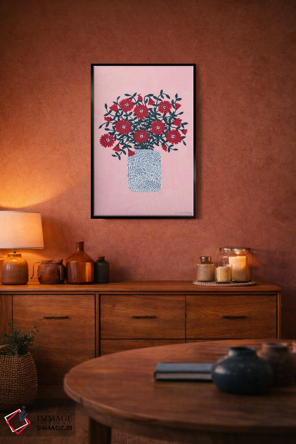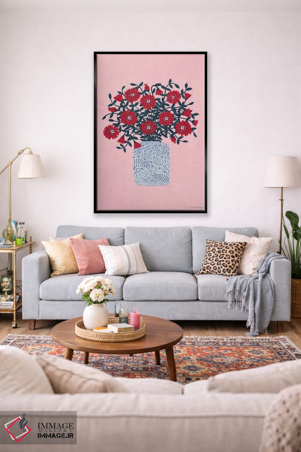 «گلهای قرمز» اثرِ «سیان سامرحیز» با رویکرد معاصر، برای دفتر کار و خانههای مدرن انتخابی مناسب است؛ موضوعِ این اثر هم هویت میدهد.