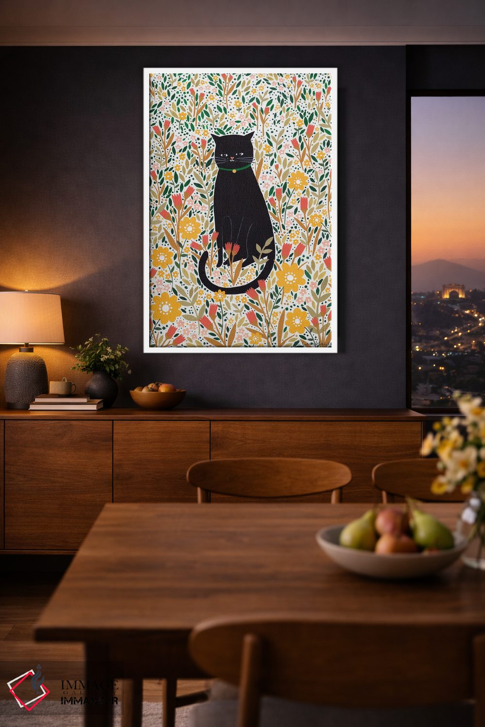 براساس پالت گرم اثر، قاب تیک گرم (چوبی) پیشنهاد اول است و مشکی مات (فریم متوسط) مکمل. برای سفارشهای پروژهای با ابعاد و قابهای اختصاصی با ایماژ در تماس باشید.