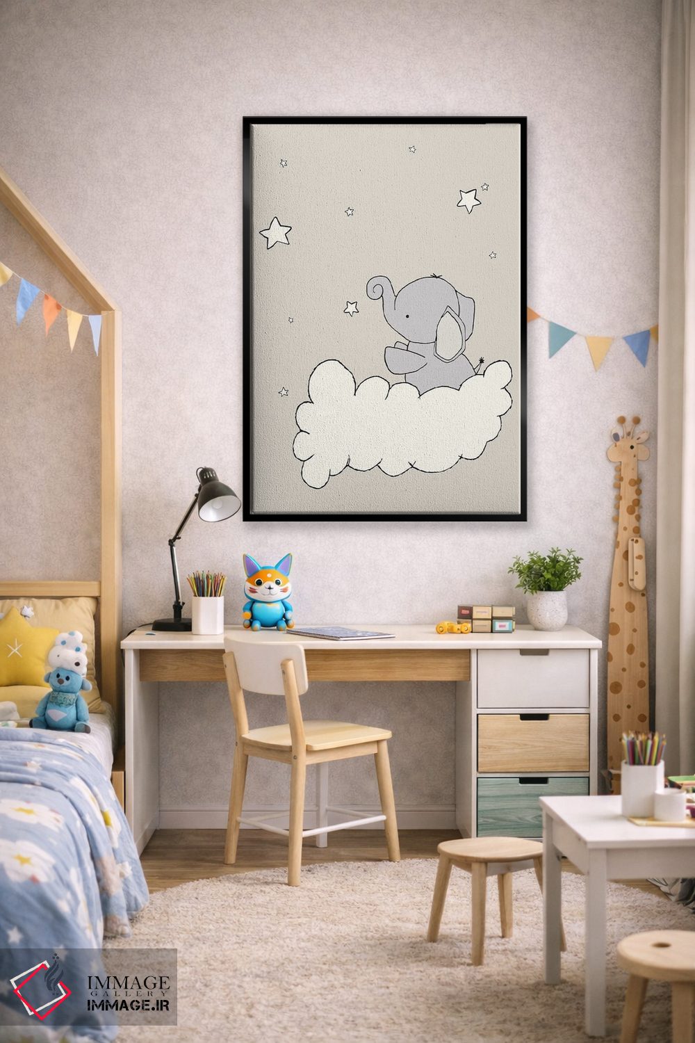 «ابر ستاره فیل» اثرِ «دیزاینز سوییت ملودی (استودیو طراحی)» میتواند بدون کودکانه شدن، بازیگوش و خوشپرداخت میماند؛ برای دیوار کنار میز کار پیشنهاد شود. هر بار نگاهش میکنید، یک جزئیات تازه به چشم میآید.