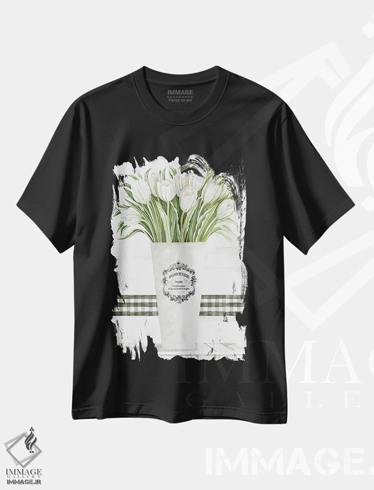 تی شرت «لاله های سفید»؛ طرح مینیمال گل دار