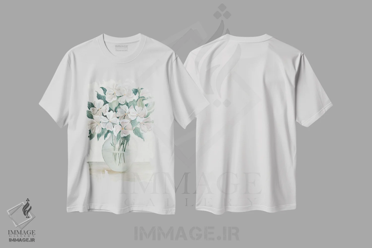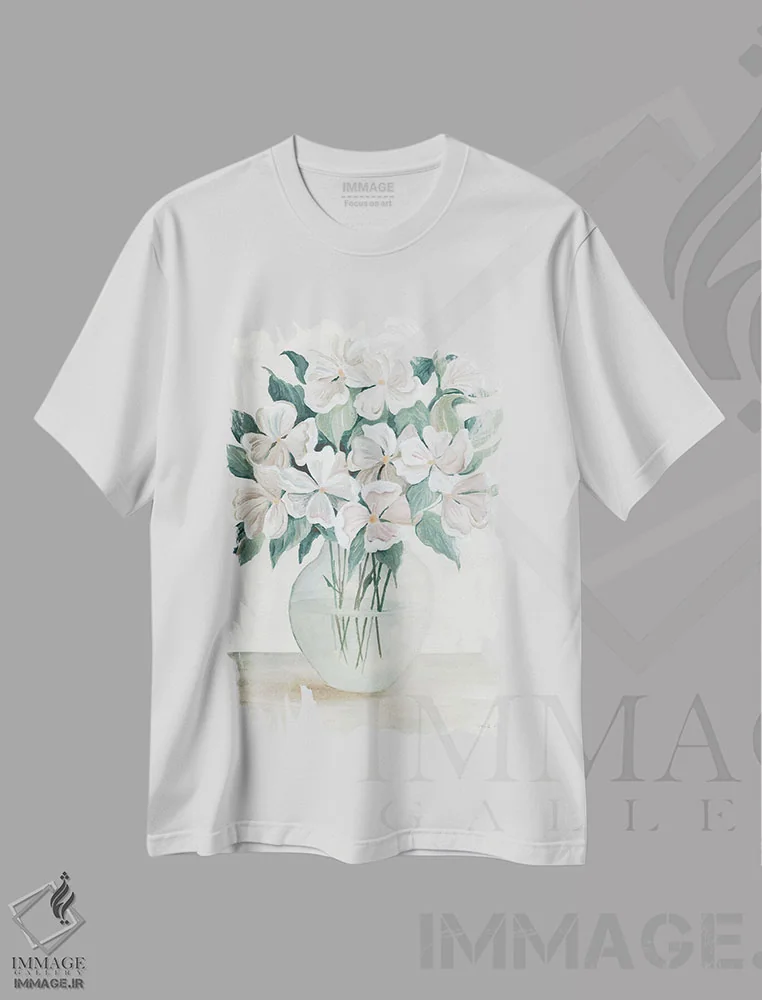 تی شرت نخ پنبه ای طرح «لذت کیهان»؛ هارمونی گل های آب رنگی و استایل لطیف