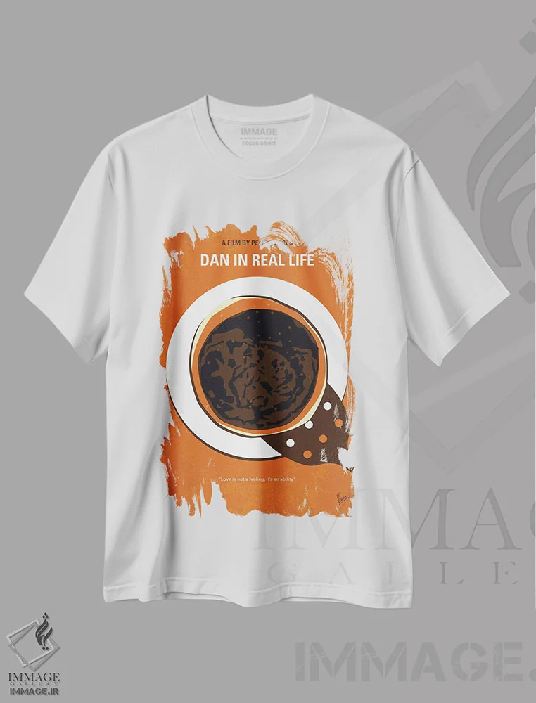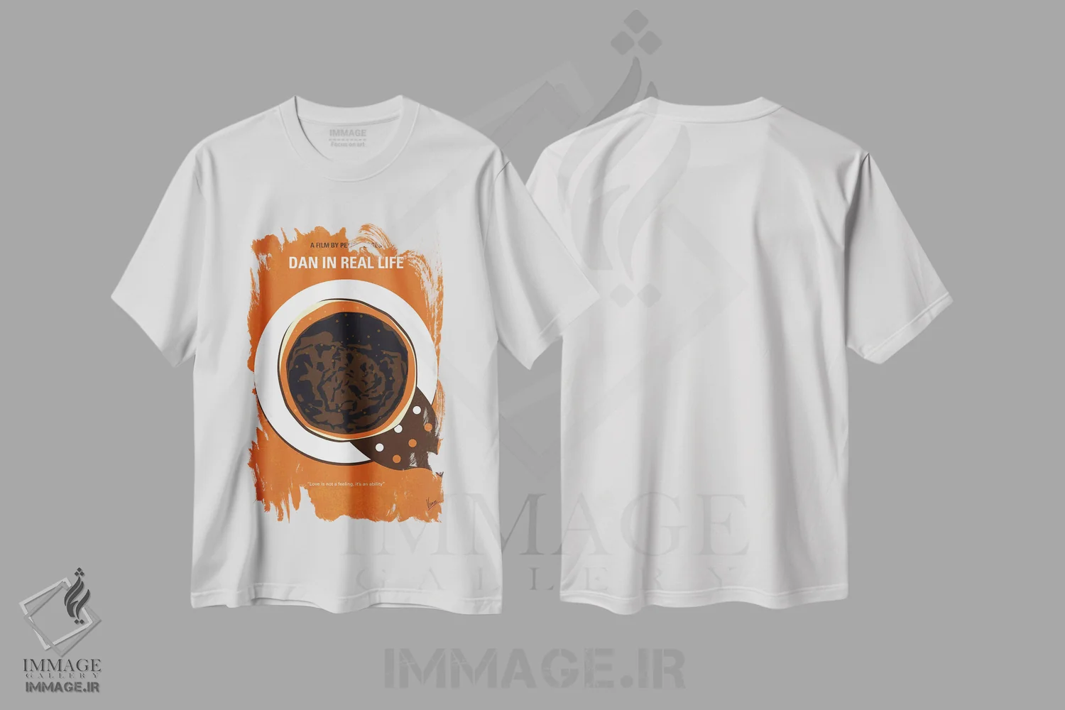 تیشرت سفید طرح دار پوستر دن در زندگی واقعی، پوستر مینیمال فیلم های کمدی اثر چانکونگ | immage.ir