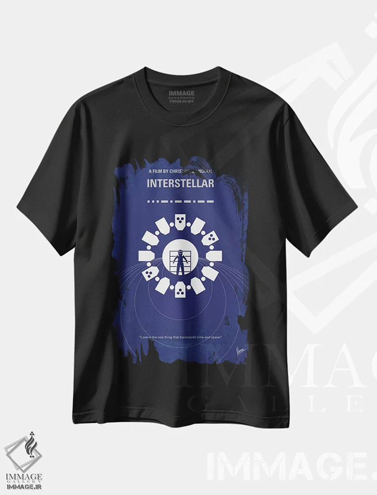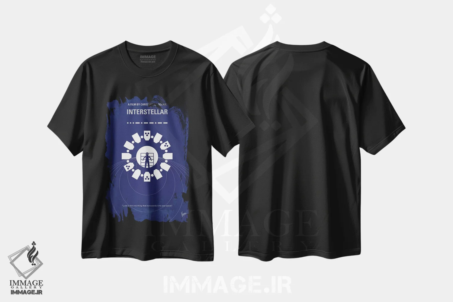 تیشرت مشکی طرح دار پوستر مینیمال فیلم میان ستاره ای، هنر دیجیتال اثر چانکونگ | immage.ir