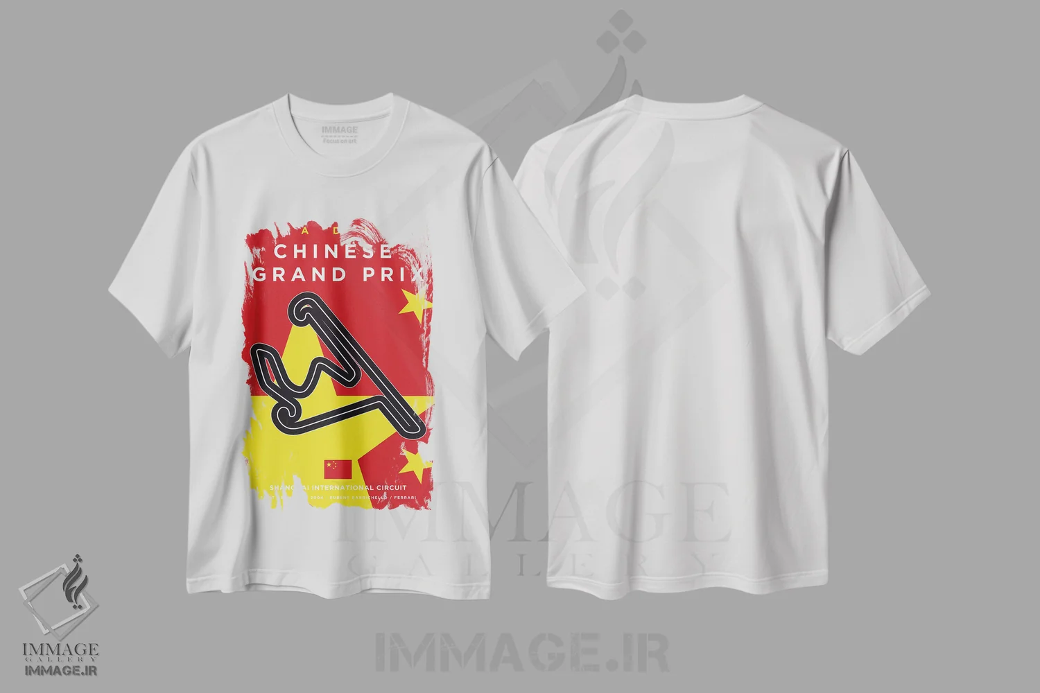 تیشرت سفید طرح دار پوستر مینیمال پیست شانگهای، هنر دیجیتال اثر چانکونگ | immage.ir