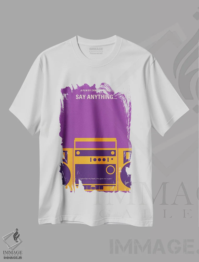 تیشرت سفید طرح دار پوستر مینیمال فیلم هر حرفی خواستی بزن، هنر دیجیتال اثر چانکونگ | immage.ir