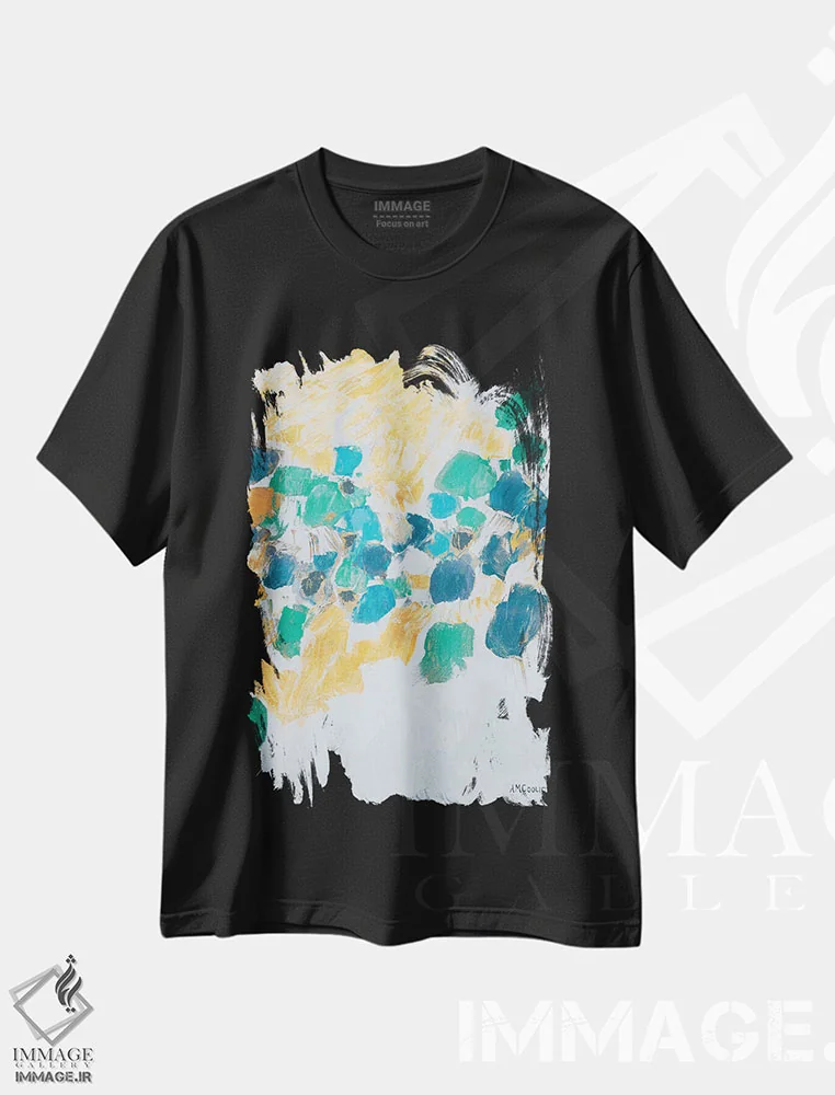 تی شرت «گره های طلایی و سبزآبی»؛ هنر زنده روی پارچه