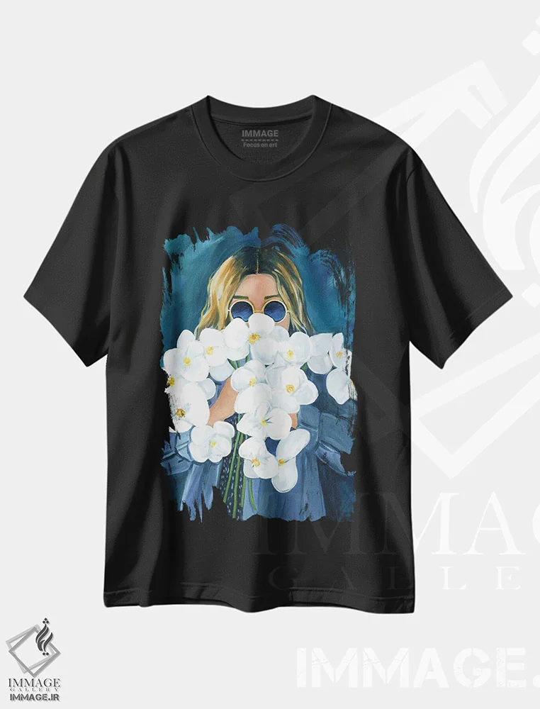 تیشرت طرح دار دختر با گل های ارکیده اثر کتی مینگوس