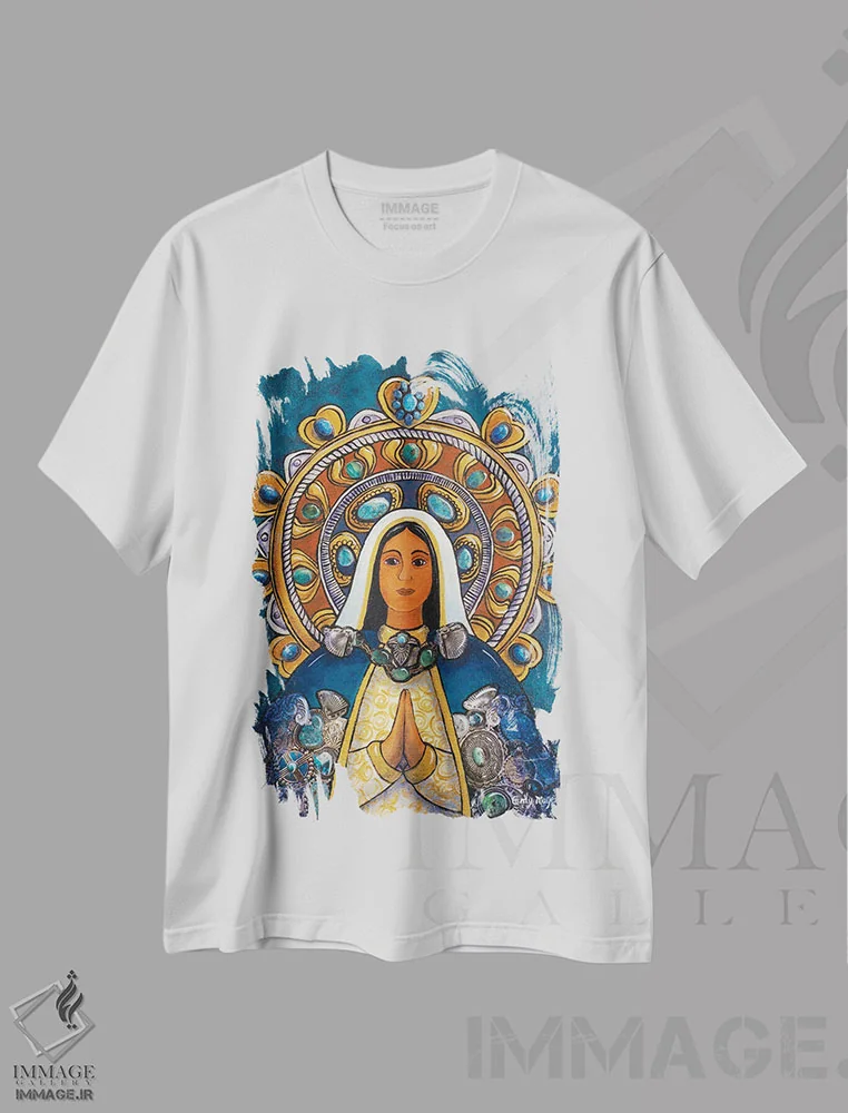 تیشرت طرح دار مریم مقدس با هاله نور اثر کندی مایر