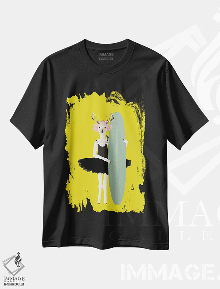 طرح «فرانسین و تخته موج سواری» روی تی شرت؛ سبک اسپرت-فانتزی