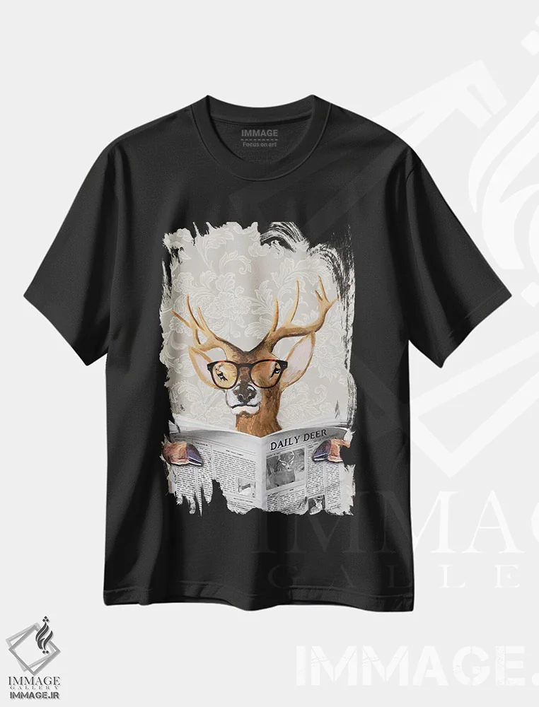 تیشرت مشکی طرح دار گوزن در حال خواندن روزنامه اثر کوکو د پاریس | immage.ir