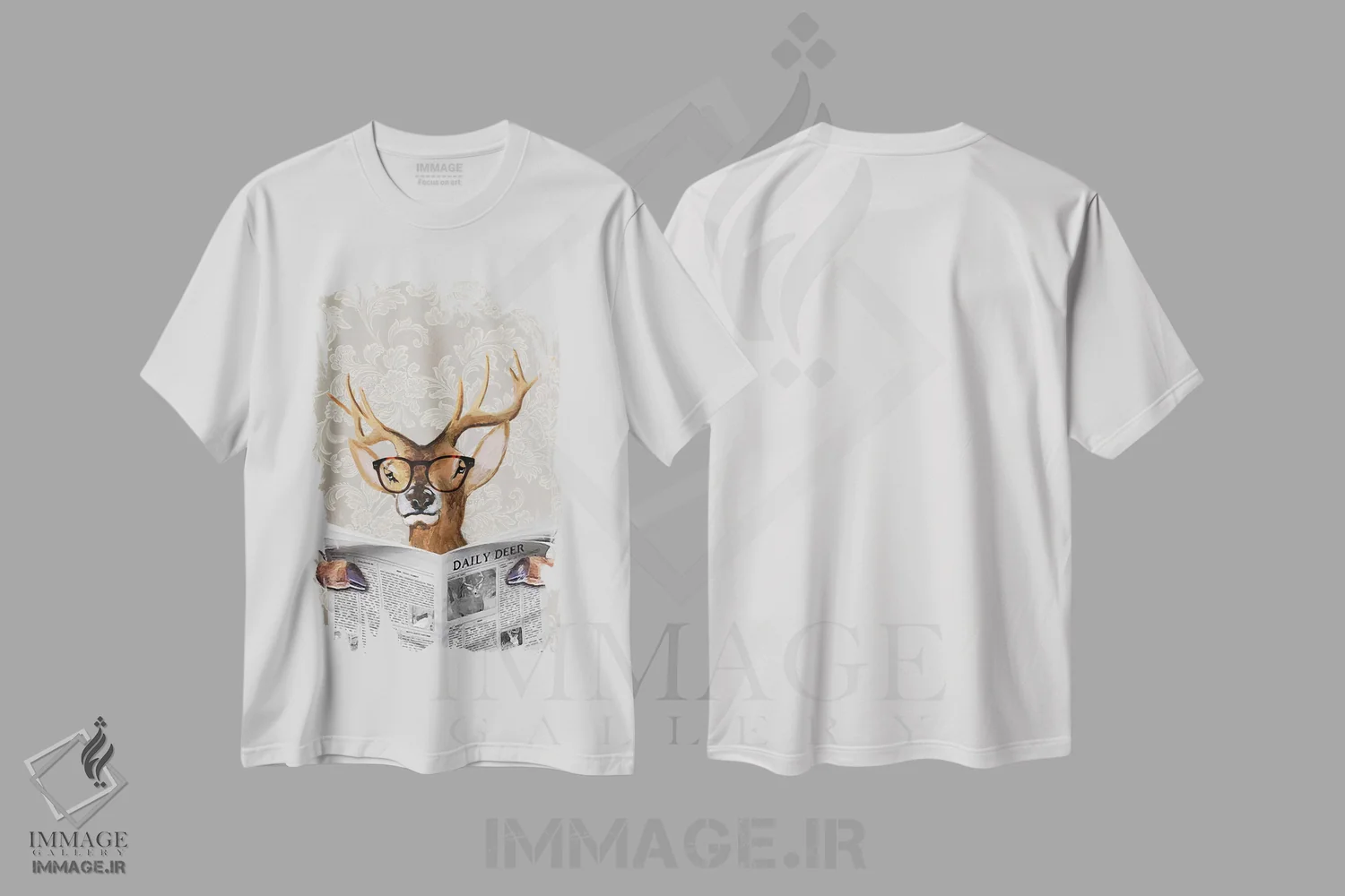 تیشرت سفید طرح دار گوزن در حال خواندن روزنامه اثر کوکو د پاریس | فروشگاه ایماژ