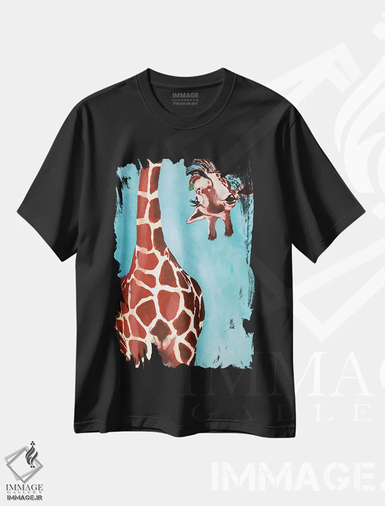 تیشرت مشکی طرح دار زرافه ها با برگ سبز، دکور معاصر اثر کوکو د پاریس | immage.ir